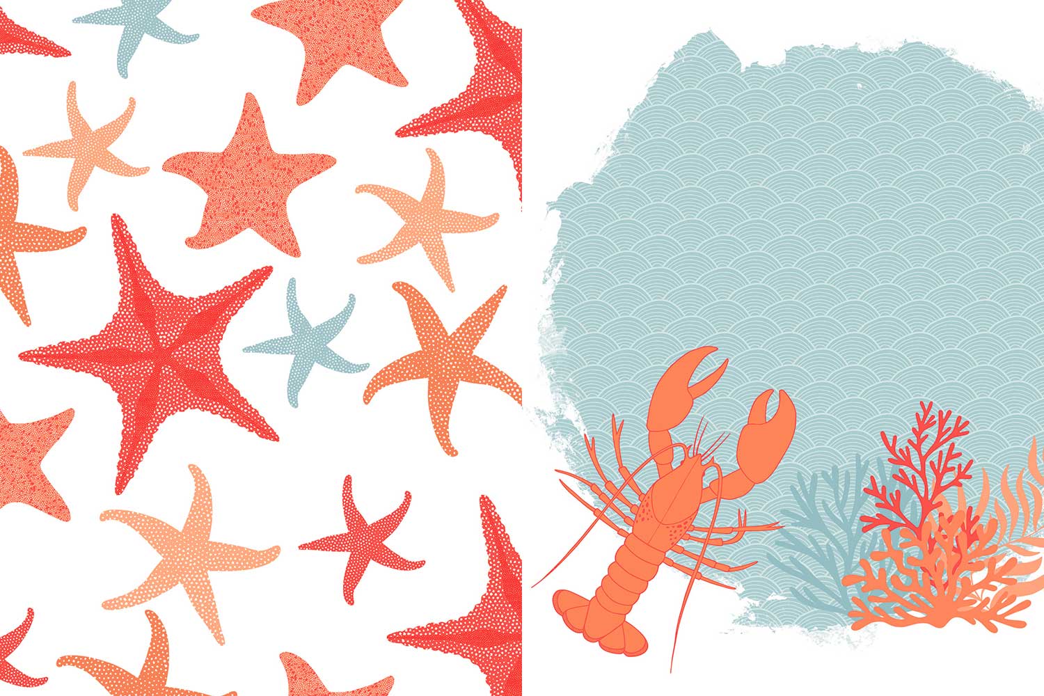 Thème Corail : teintes chaudes, motifs marins, végétation aquatique, effets texturés