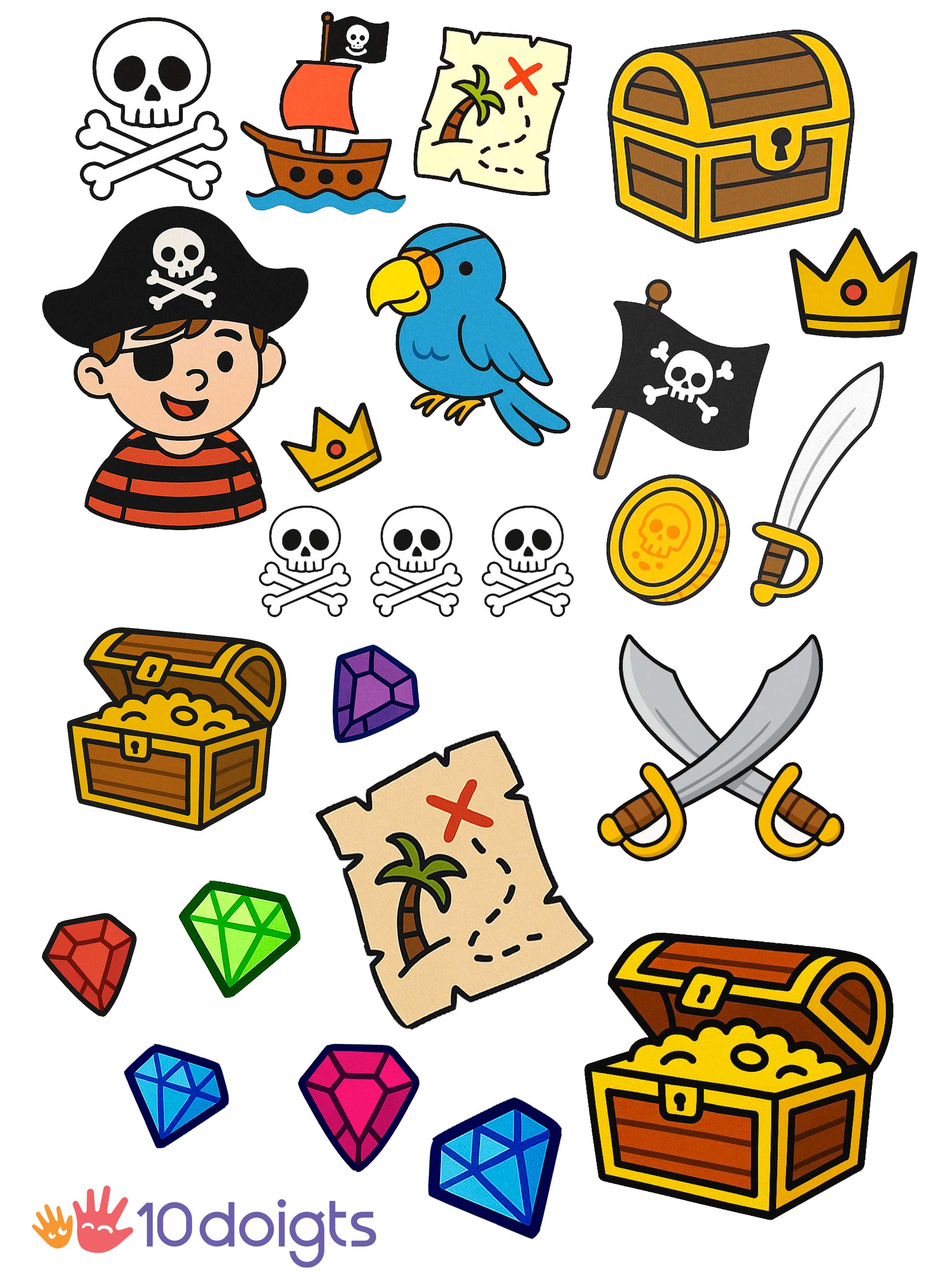 Retrouvez sous la photo principale, un modèle à imprimer, avec des motifs pirates pour reproduire nos créations !