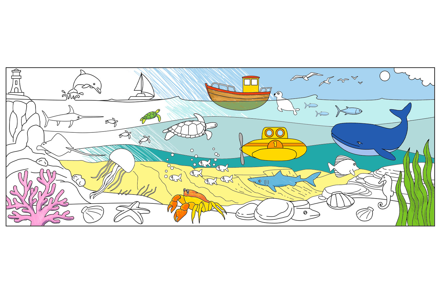 Grande fresque en papier dessin blanc (250 gr/m²) à colorier avec crayons de couleur, feutres, crayons cire, peinture...