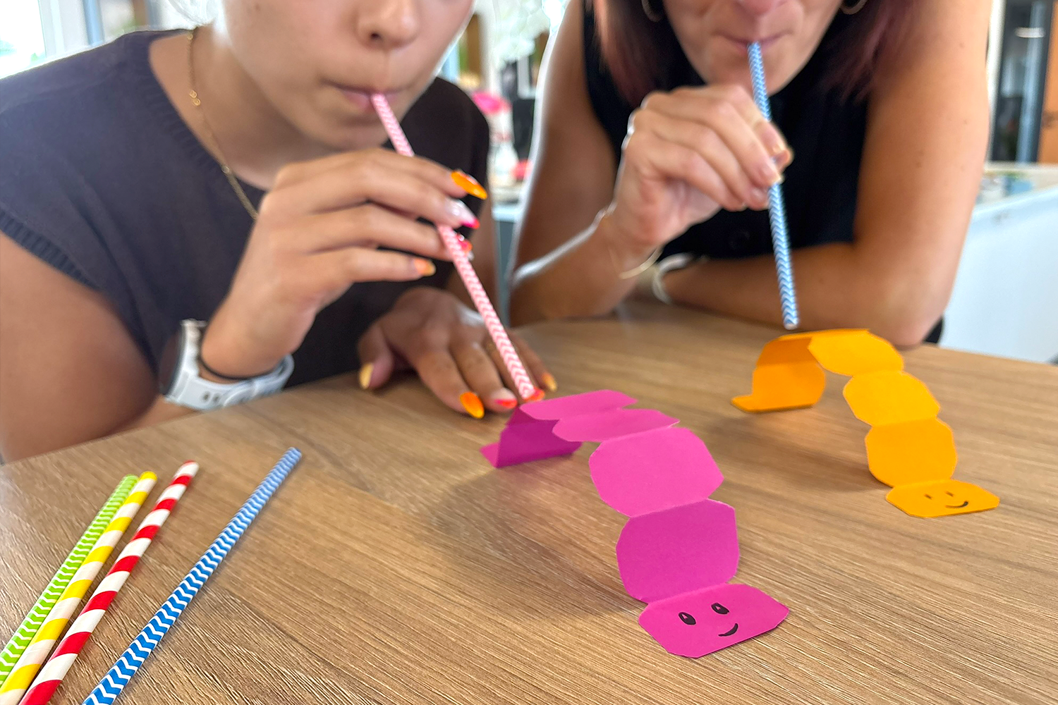 Souffler dans la paille et regarder la chenille se déplacer. Que la course commence !