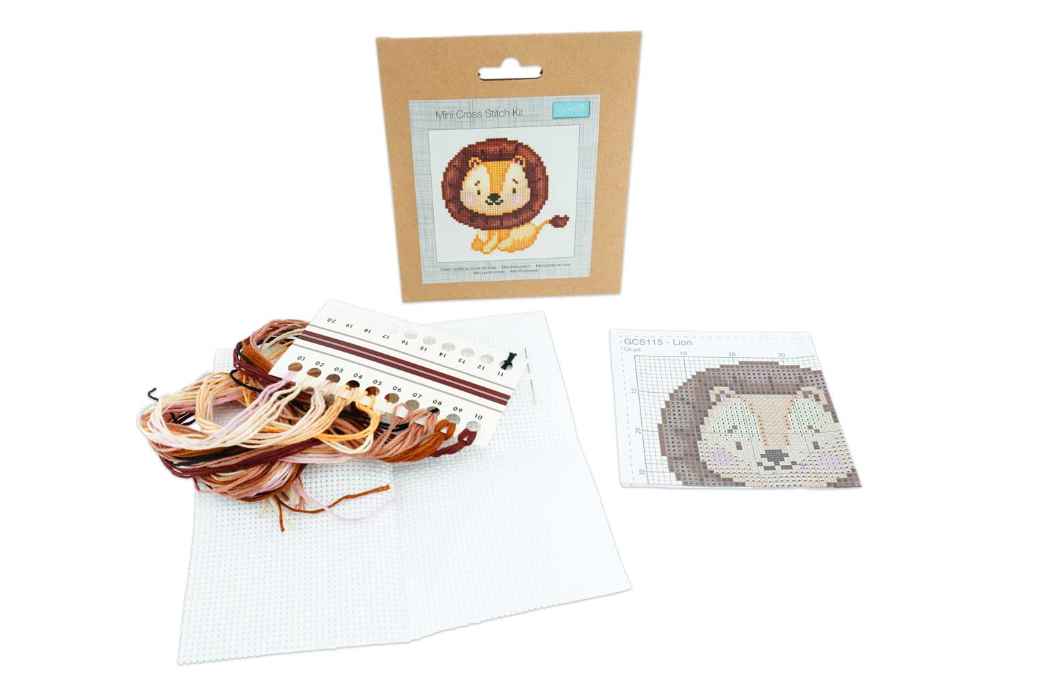 Le kit contient tout le nécessaire pour broder facilement le modèle sur une toile Aïda de 13 x 13 cm. Les fils sont déjà organisés sur une cartelette et les instructions sont illustrées pour un suivi pas à pas sans difficulté.