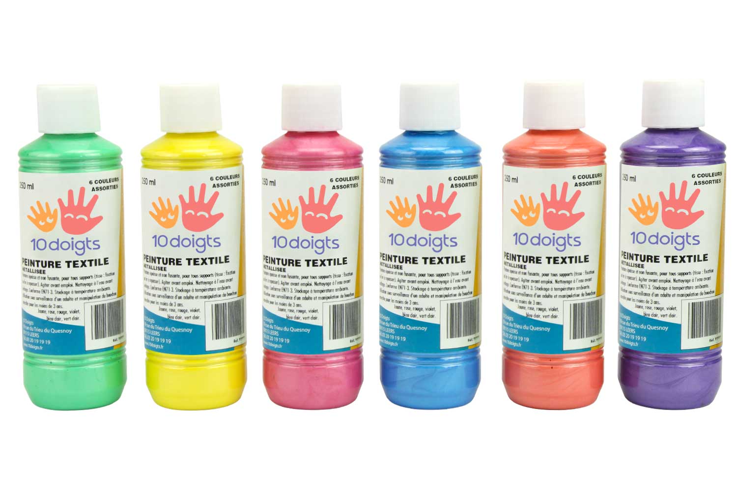 Peinture textile nacrée, 250 ml - 6 couleurs