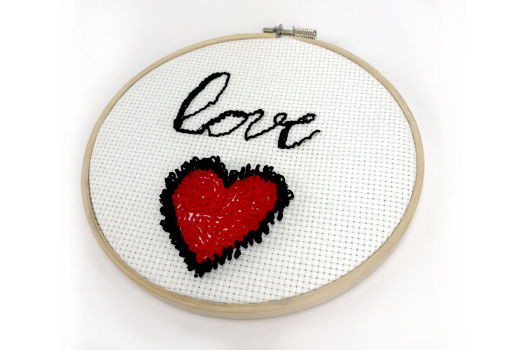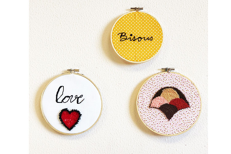 Le concept : C'est une aiguille à perforer, on pique sur l'envers et des points semblables à des bouclettes apparaissent sur l'endroit du tissu, ou on pique sur l'endroit pour avoir une broderie plate. Elle permet donc de dessiner avec du fil ! Dessinez au préalable votre motif sur le tissu, puis venez colorier en poinçonnant avec la punch needle.