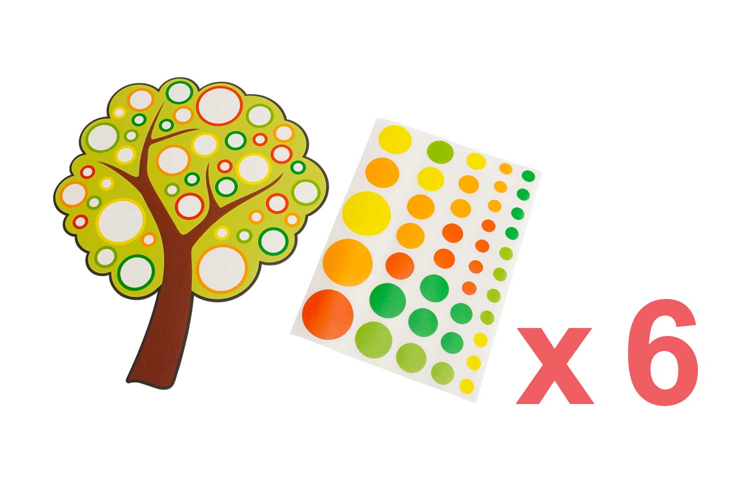 Atelier gommettes : 6 arbres + 6 papillons + 6 arcs-en-ciel
