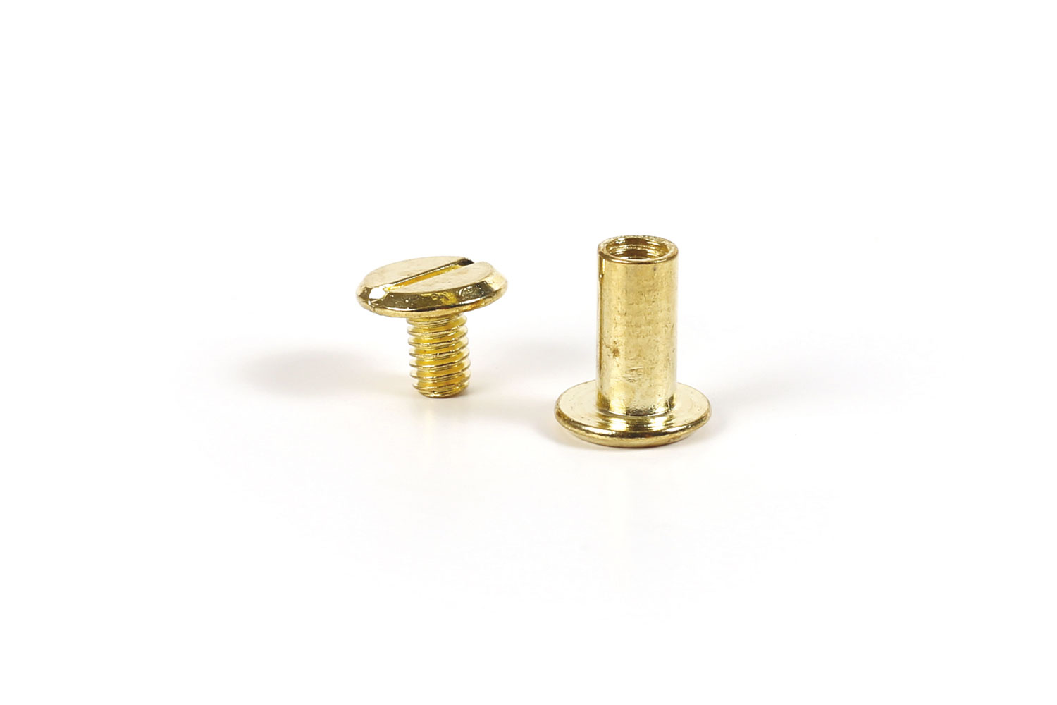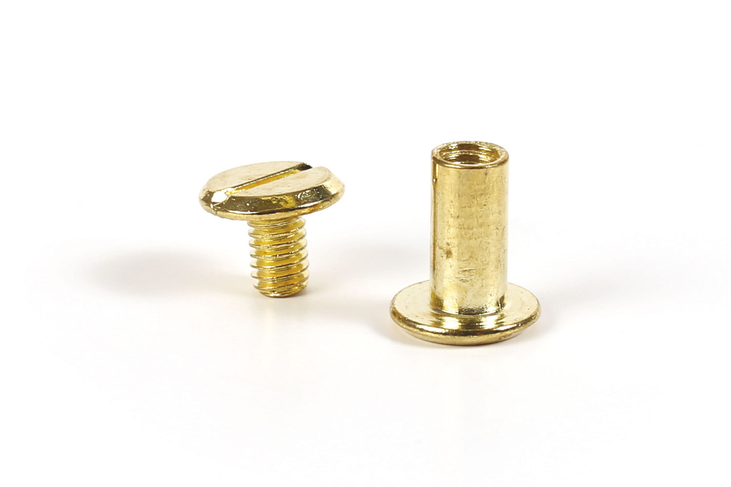 Sachet de 20 attaches vis Chicago spécial Cuir et pâte polymère effet cuir. Vis Chicago pour attacher solidement différentes pièces de cuir ou de tissus ensemble. Elle s'enlève et se remet à l'infini. Utilisez-les pour la confection de sacs, porte-monnaie ou de fermoir à bracelet.
