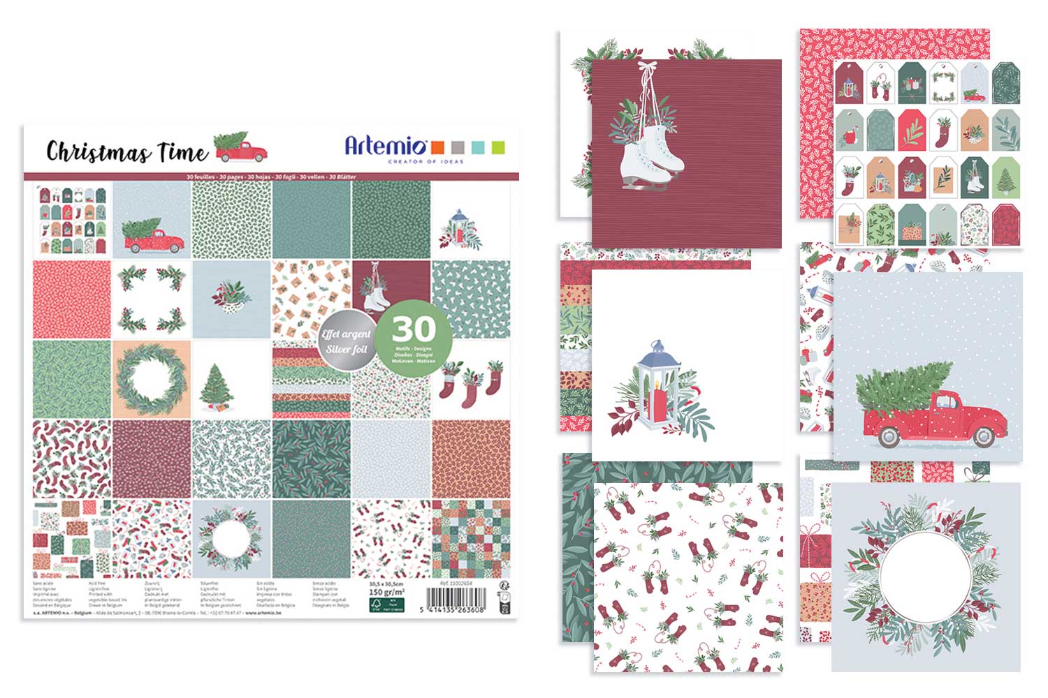 Découvrez le bloc de 30 papiers scrapbooking Christmas Time d’Artemio et laissez-vous emporter par l’esprit des fêtes. Chaque feuille dévoile des designs festifs et variés mettant en scène des sapins, des chaussettes de Noël, des cadeaux, des patins à glace, du gui et bien d’autres motifs typiquement hivernaux. La collection joue avec une palette traditionnelle de rouges, verts, bleus et blancs qui recrée instantanément l’ambiance chaleureuse et conviviale de Noël. Pour sublimer vos créations, certaines pages sont enrichies d’impressions foil argentées qui apportent éclat, brillance et une touche d’élégance raffinée à vos projets. Avec leur format 30 x 30 cm et leur qualité sans acide ni lignine, ces papiers sont parfaits pour le scrapbooking, la carterie et toutes vos décorations de fêtes.