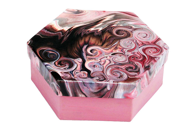 Retrouvez ces jolies boîtes de papier mâché en vente à l'unité ou en lot. Vous pouvez décorer facilement cette matière cartonnée avec du collage de papier avec du vernis colle), avec de la peinture acrylique, avec du collage d'accessoires (strass, paillettes, gommettes, pompons...).