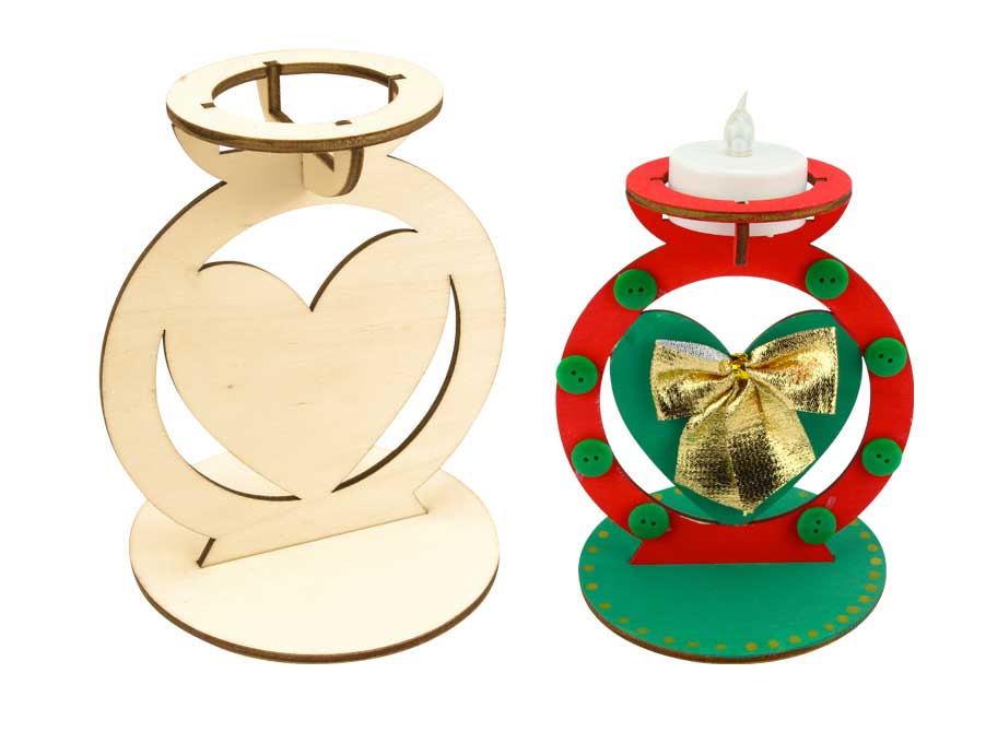 Adorable ensemble de six bougeoirs en bois en forme de cœur, prêt à être décoré. Personnalisez chaque bougeoir avec peintures, gommettes ou autres décorations. A monter après décoration en emboitant les pièces en bois.