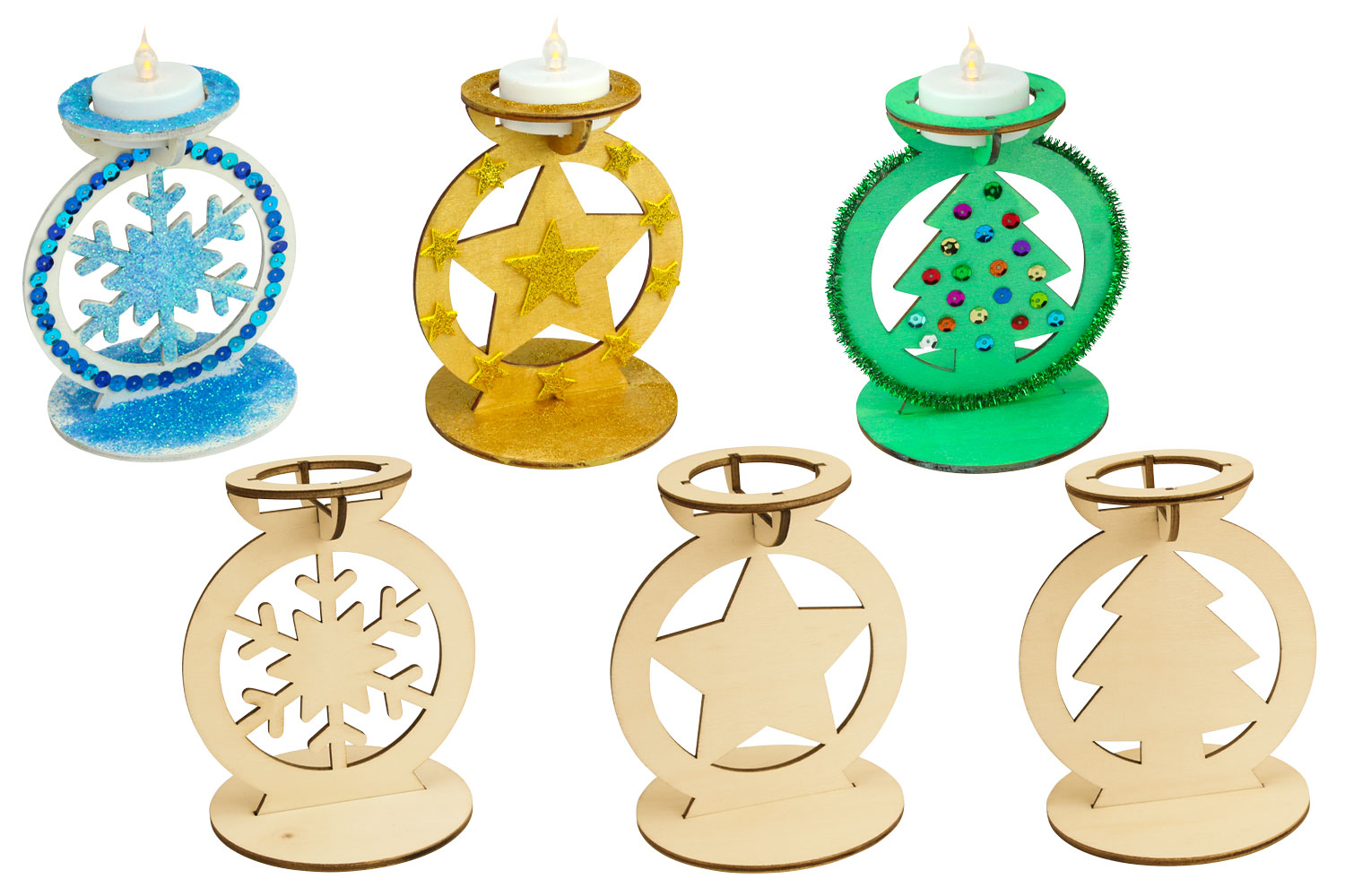 Conseils de décoration et de montage : L'assemblage de ces bougeoirs se fait facilement par emboîtement. Pour vous faciliter la tâche, vous pouvez réaliser la plupart de vos décorations (feutres, paillettes, stickers) avant le montage, lorsque les pièces sont encore à plat.