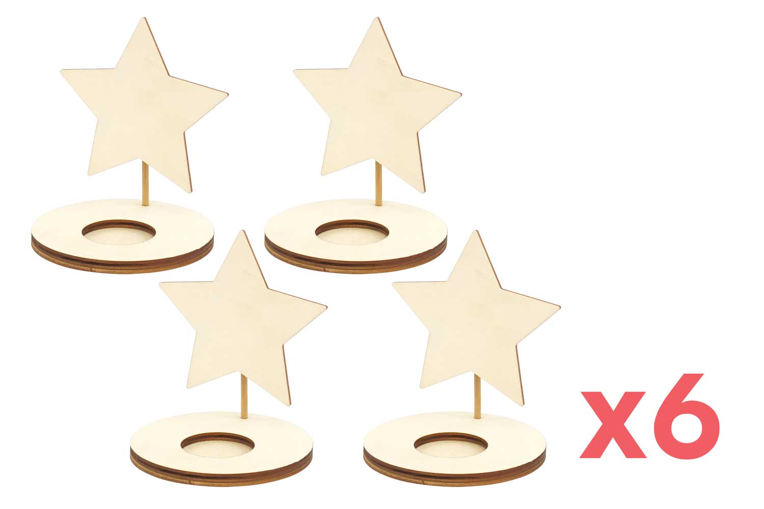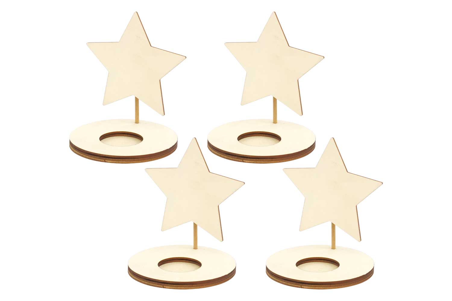 Bougeoirs étoile en bois - 4 pièces