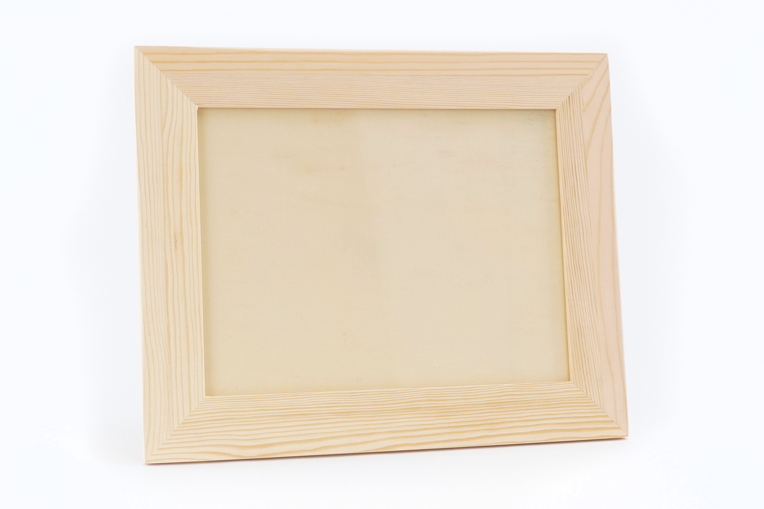 Cadre en bois naturel, équipé d'une vitre et d'un pied à l'arrière pour une pose verticale ou horizontale.