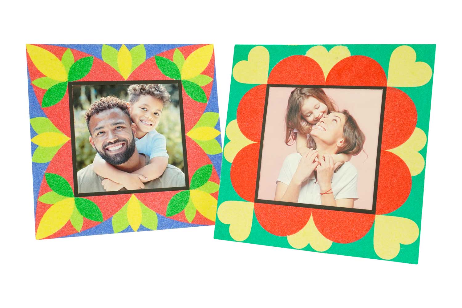Cadres photo à décorer avec sable coloré, paillettes ou sequins.