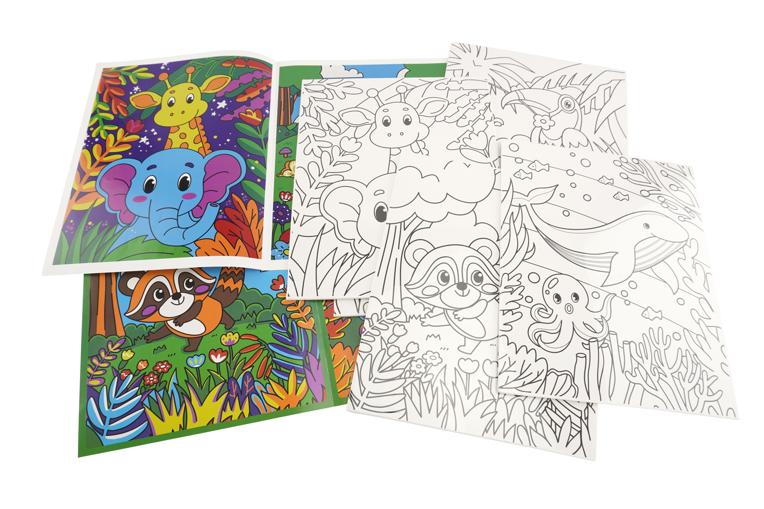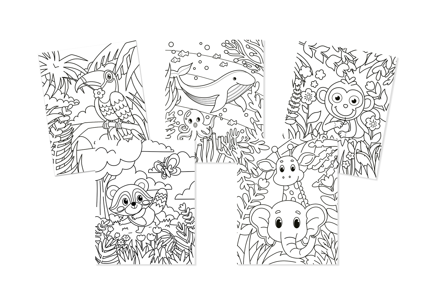 Le set propose un voyage entre la jungle et l'océan avec des animaux fascinants comme la girafe : le singe : le toucan : la baleine ou le raton laveur.