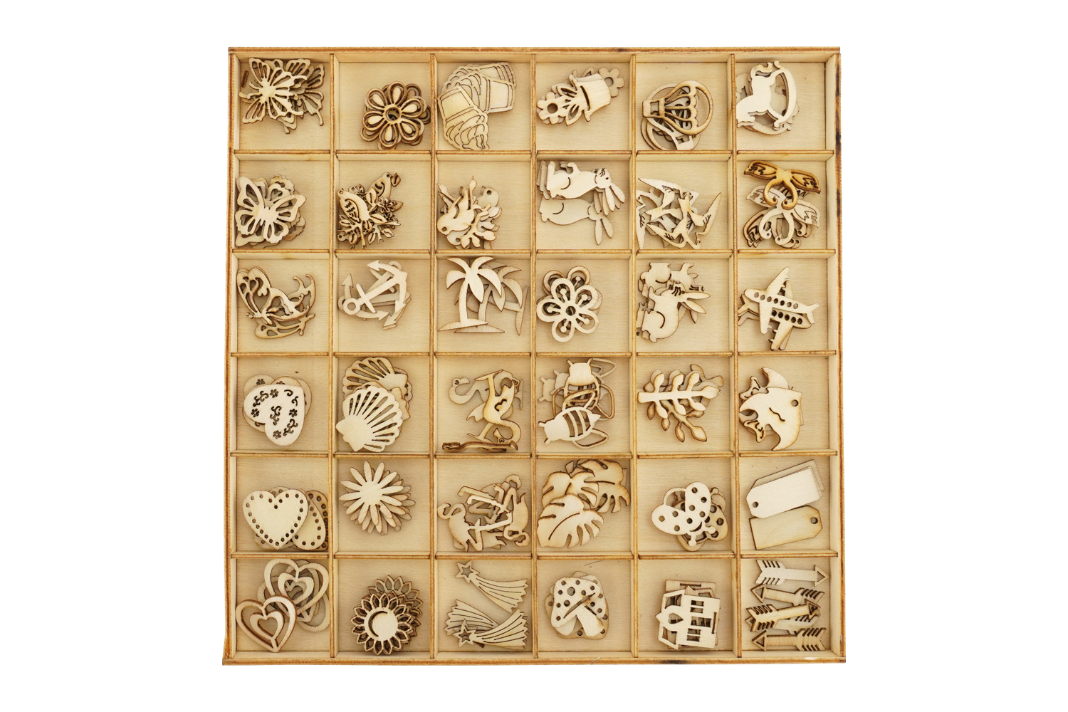 Un grand coffret rempli de mini trésors en bois ! Avec 36 motifs variés (fleurs, animaux, insectes, cœurs, feuilles…), ce set complet est parfait pour décorer, personnaliser ou créer à l’infini.