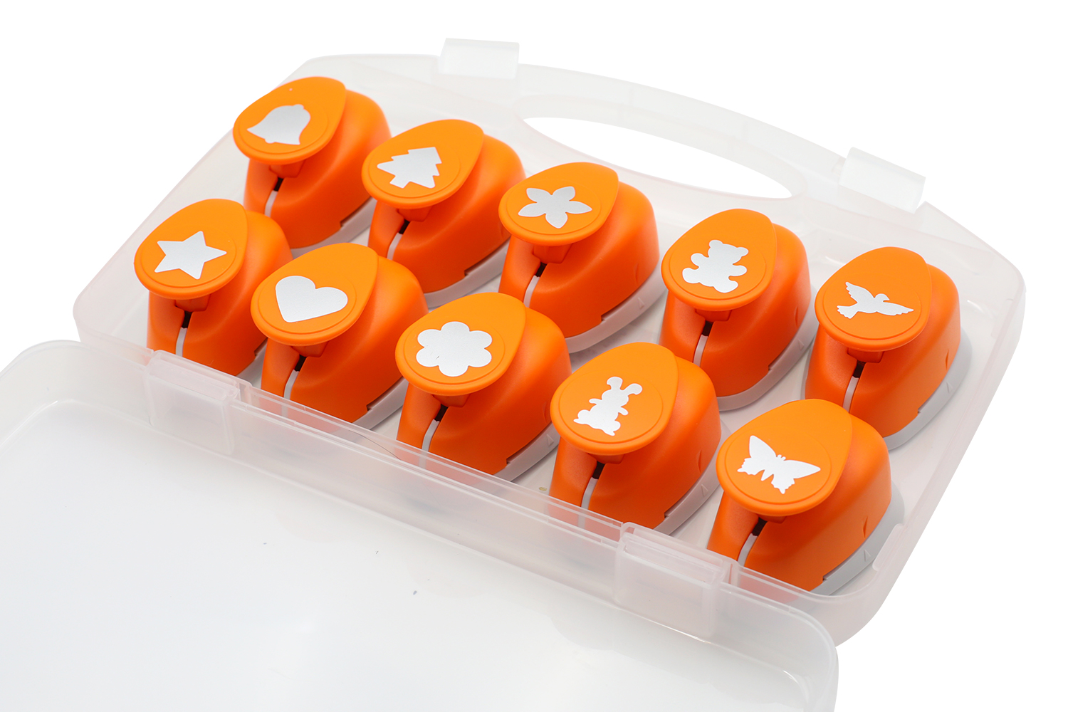 Ce coffret contient 10 perforatrices grand format pour découper sans effort de superbes motifs de 2,5 cm. Idéales pour créer des décorations de table, des étiquettes cadeaux originales ou des embellissements qui ne passeront pas inaperçus. Chaque perforatrice a sa place dans la valisette de rangement pour un atelier toujours bien organisé.