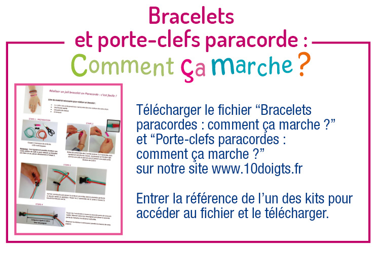- Cliquez sur la vignette "FICHE TECHNIQUE" sous la photo principale pour découvrir la marche à suivre pour réaliser des bracelets en paracorde.