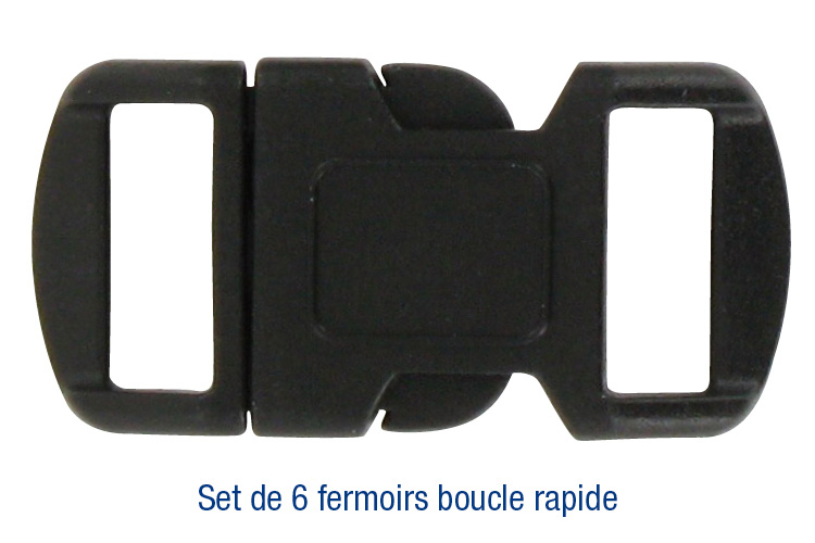 Ces boucles rapides en plastique noir ou aux couleurs assorties vous permettront de réaliser facilement les fermetures de vos bracelets.