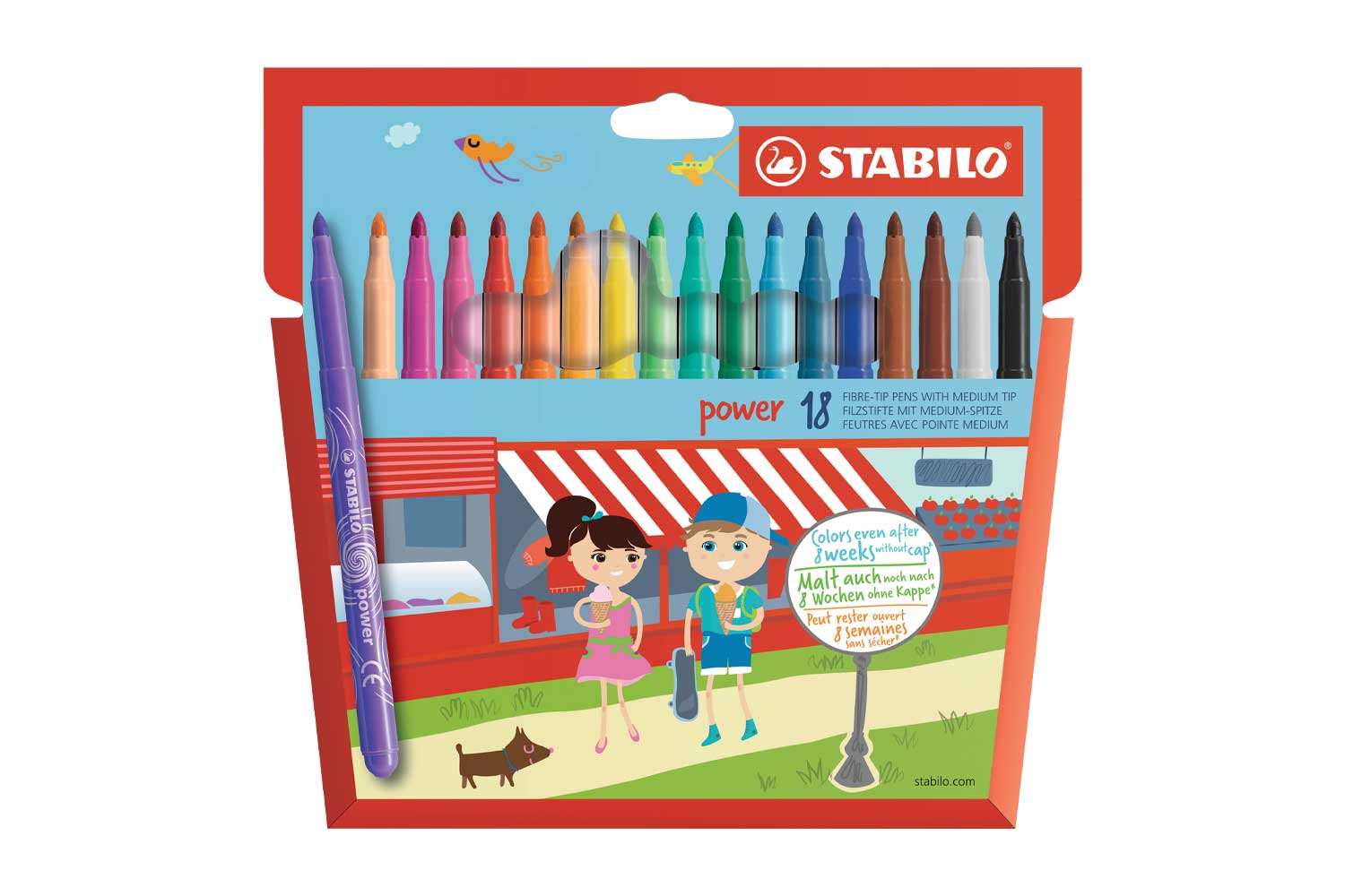 Feutres Stabilo Power, encres super lavables, pointe moyenne, jusqu’à 8 semaines sans sécher !Ces feutres Stabilo Power conviennent parfaitement aux écoles, crèches, centres périscolaires, collectivités, médiathèques, ainsi qu’aux familles recherchant des feutres lavables et résistants.
