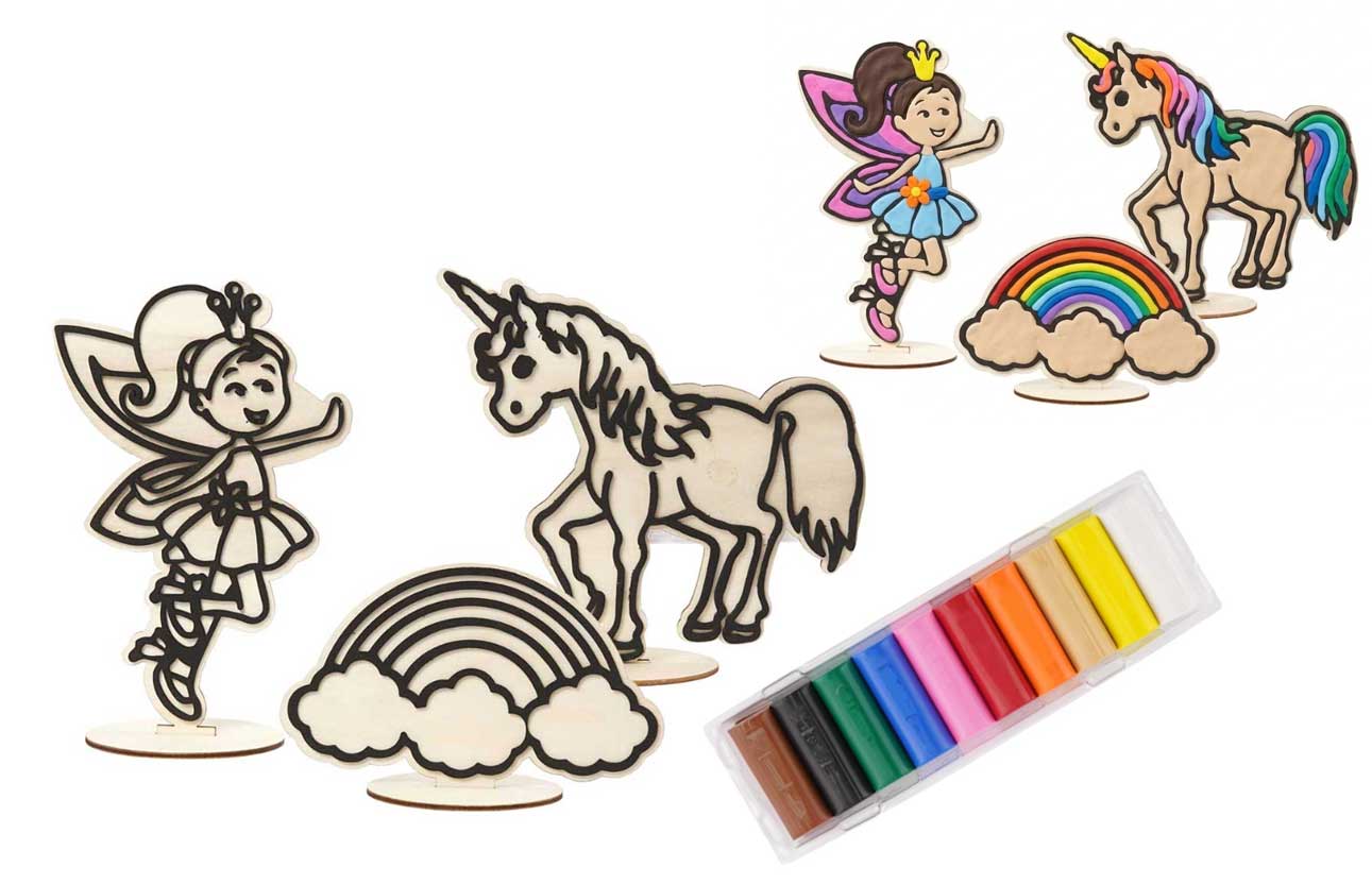 Les jeunes créateurs peuvent personnaliser chaque figurine en utilisant de la pâte à modeler inclus dans ce kit. Le socle en bois fourni avec les figurines (à assembler) permet aux enfants de le personnaliser avant de fixer la figurine.