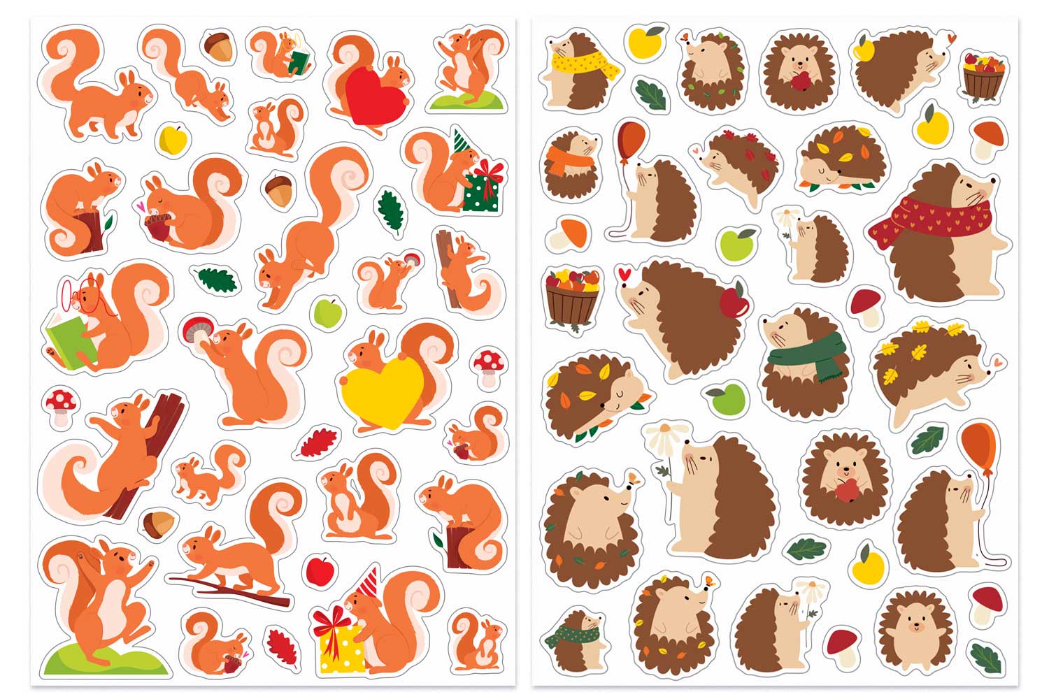 Gommettes “Écureuils et hérissons” , autocollants d’automne pour activités créatives.