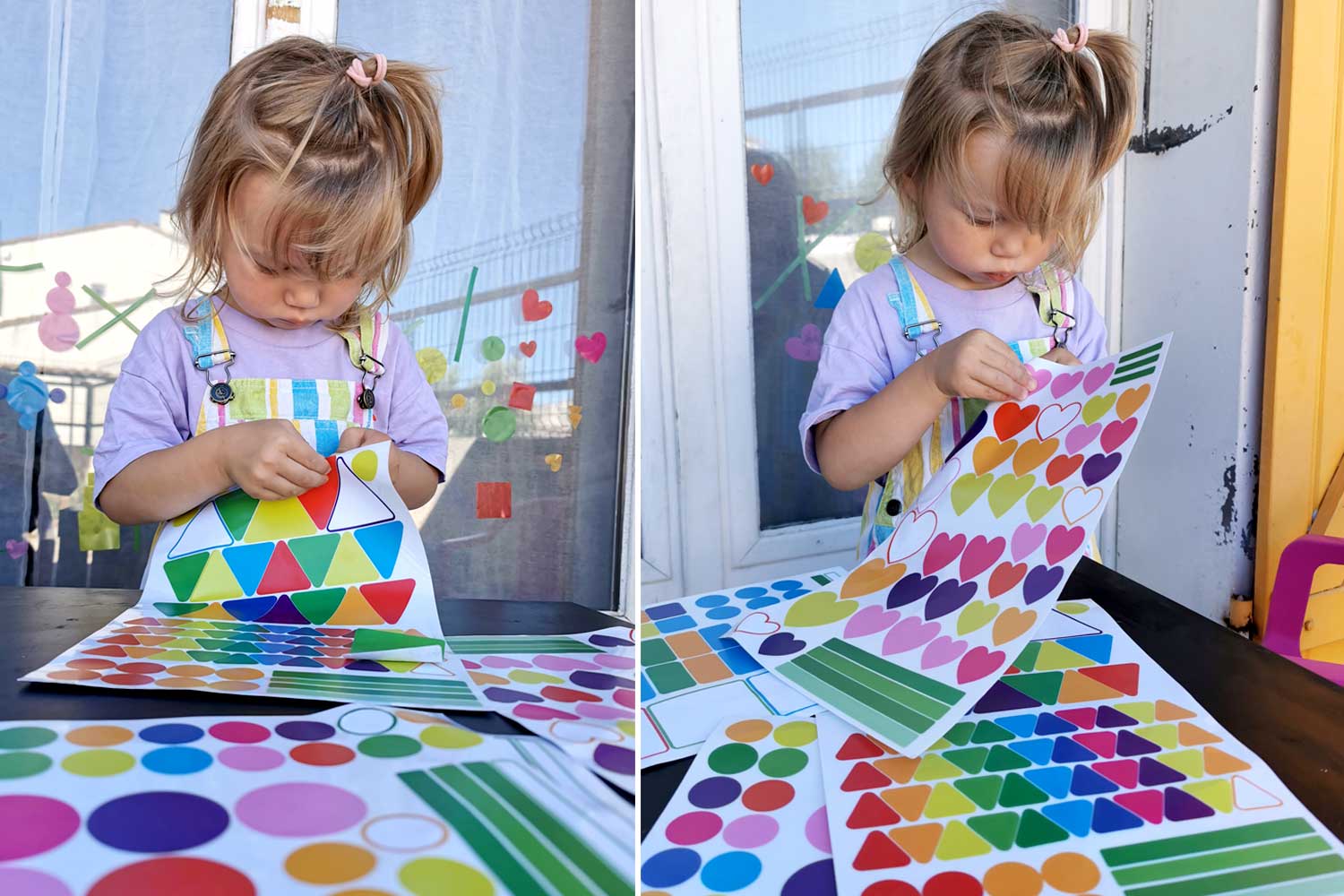 Mon fils de 6ans et 2ans s'amusent à décorer toutes les vitres de la maison.Colle très bien