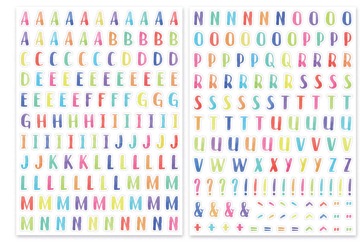 Avec leurs nuances douces et leurs contours blanc effet aquarelle, ces gommettes alphabets sont parfaites pour embellir cahiers, cartes, affiches, panneaux, boîtes, scrapbooking ou projets d’écriture.