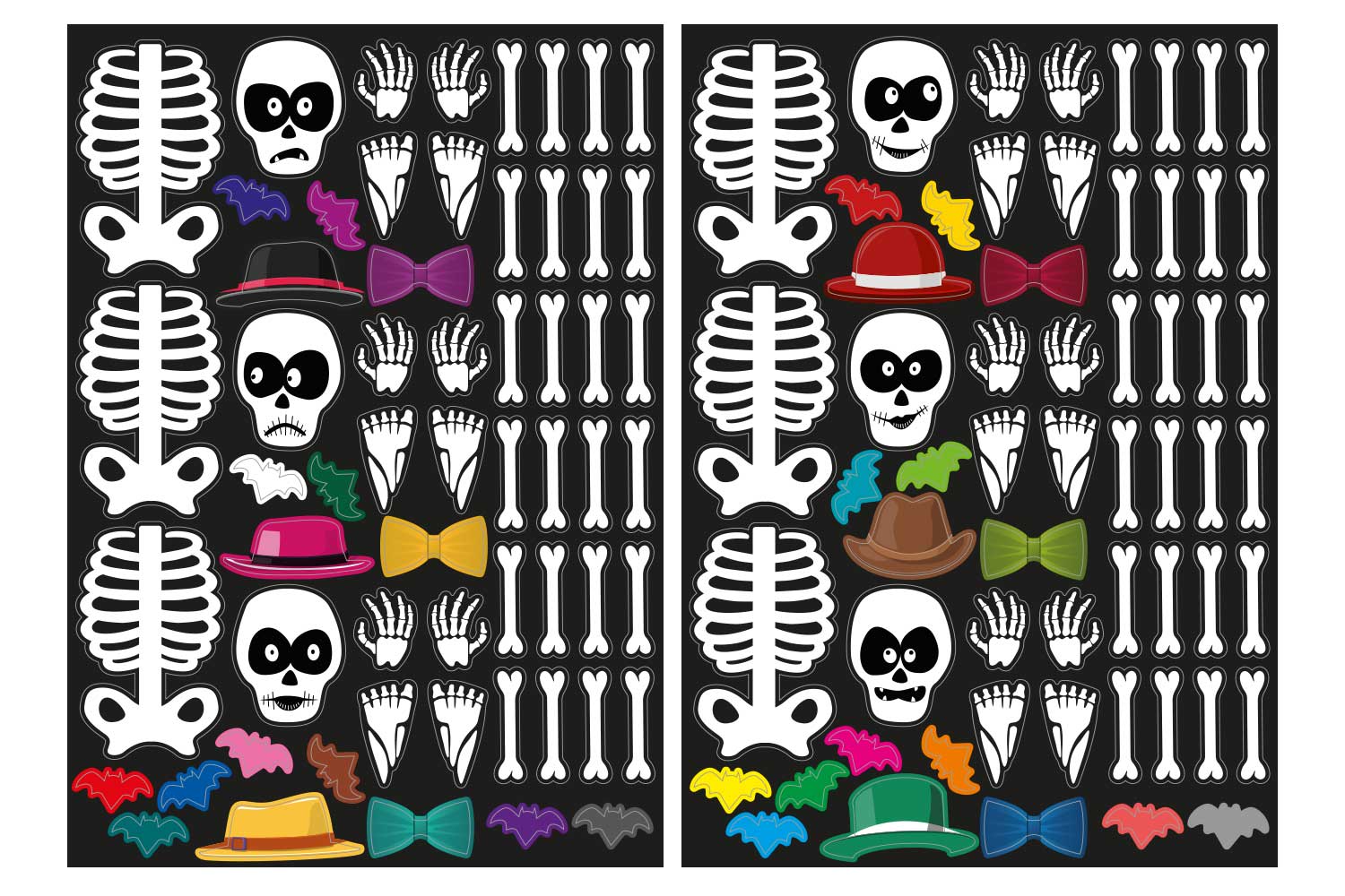 1 set de 2 planches, permet de créer 6 squelettes !