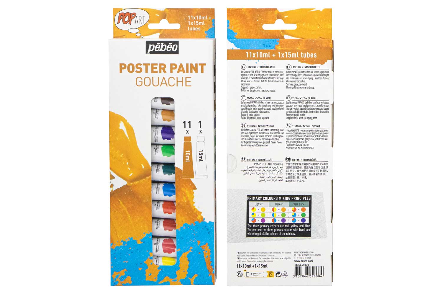 - Ce set contient 12 tubes de gouaches fine : 11 tubes de 10 ml chacun + 1 tube de 15 ml pour le blanc.