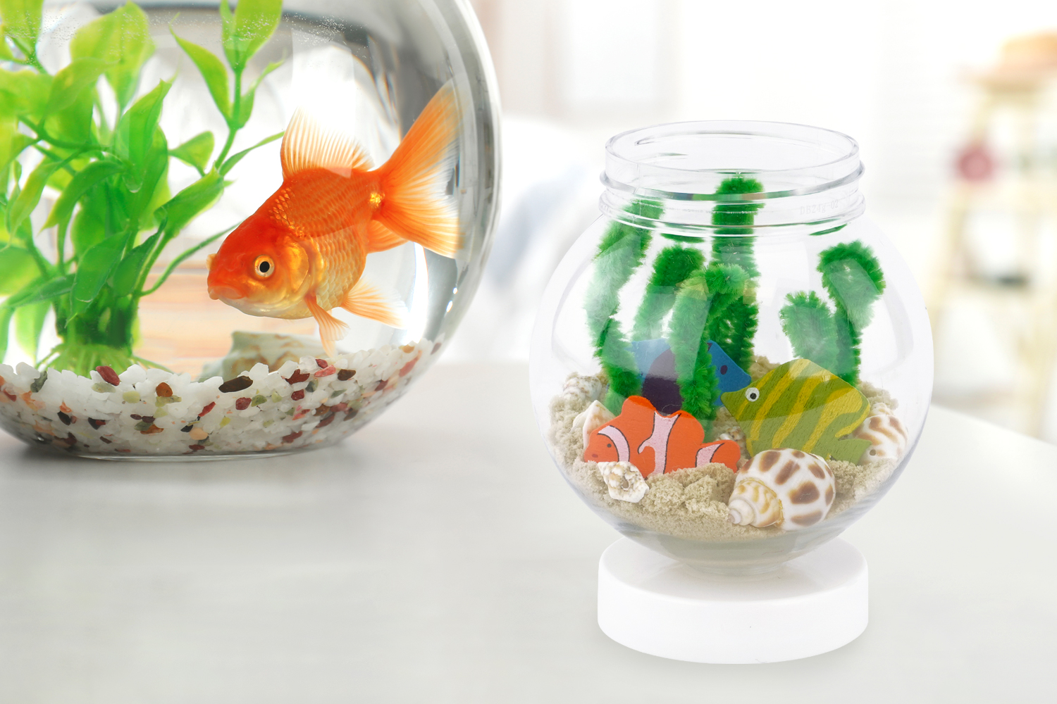 Dans cette activité amusante, les enfants vont transformer un simple globe en plastique en un magnifique aquarium miniature. En utilisant leur créativité, ils pourront créer un monde sous-marin enchanteur, rempli de sable, de coquillages colorés et de poissons tropicaux fascinants !