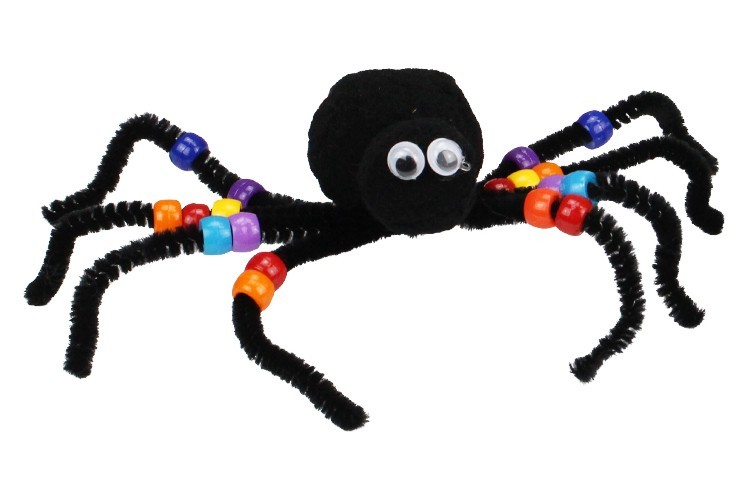 Pour apporter une touche de couleurs, enfiler des grosses perles en plastique sur les pattes de l'araignée.
