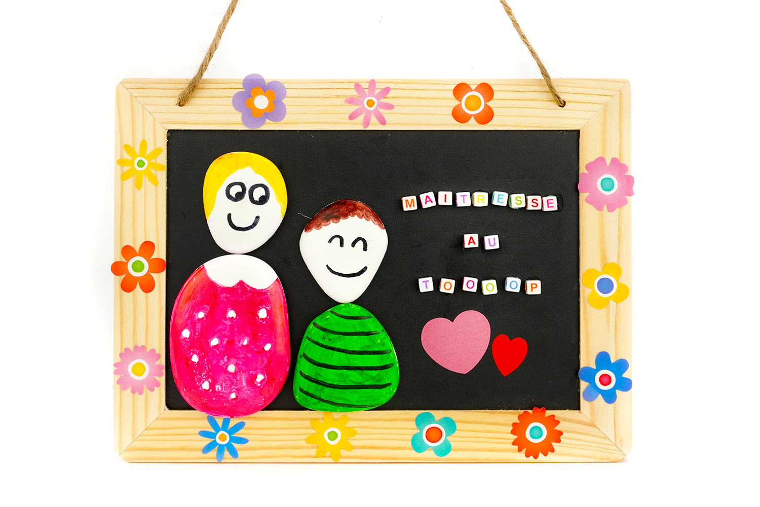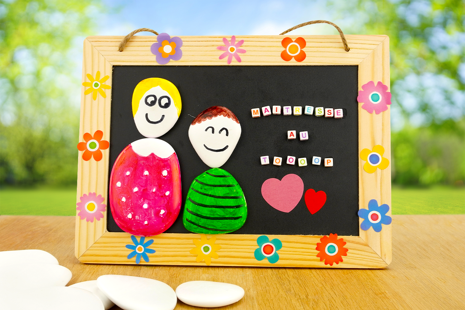 Ardoise "Maîtresse au TOP" avec des galets