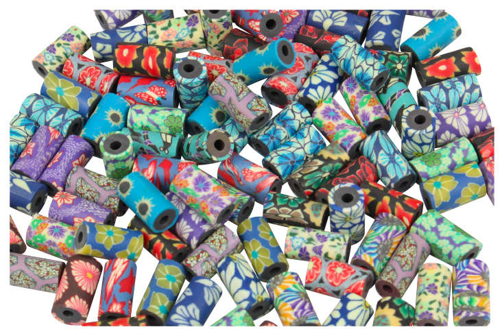 Enfilez ensuite 7 perles plates en pâtes polymères ( violet et bleu assortis).