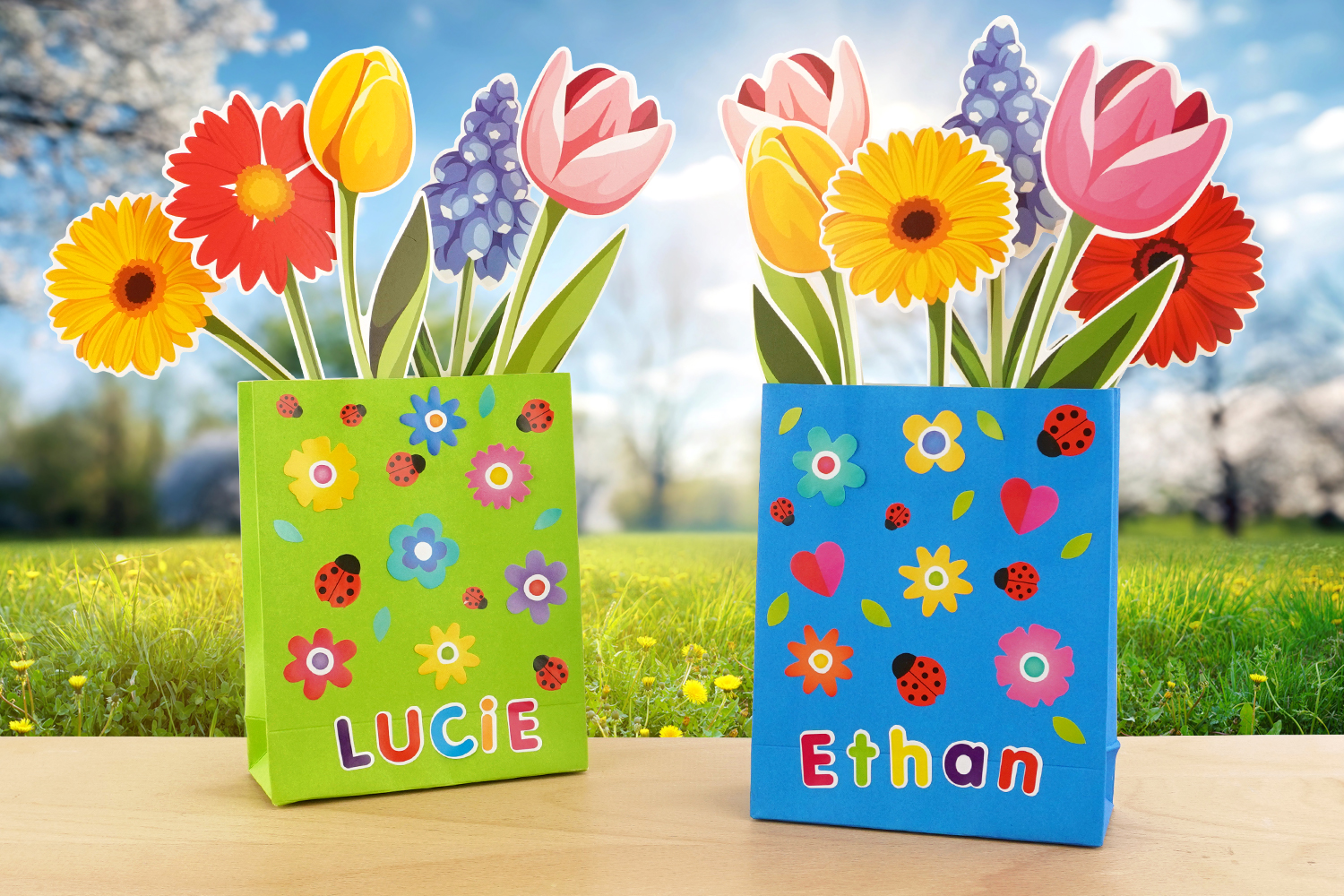 Avec cette activité printanière, les enfants vont pouvoir confectionner un magnifique bouquet de fleurs à offrir ou à exposer fièrement ! Grâce à un sac en papier coloré à décorer avec des gommettes et de jolies fleurs en carte forte à insérer à l’intérieur, ils réaliseront une création unique et personnalisée. Facile à réaliser, cet atelier est parfait pour fêter le printemps et la fête des mères tout en s’amusant !