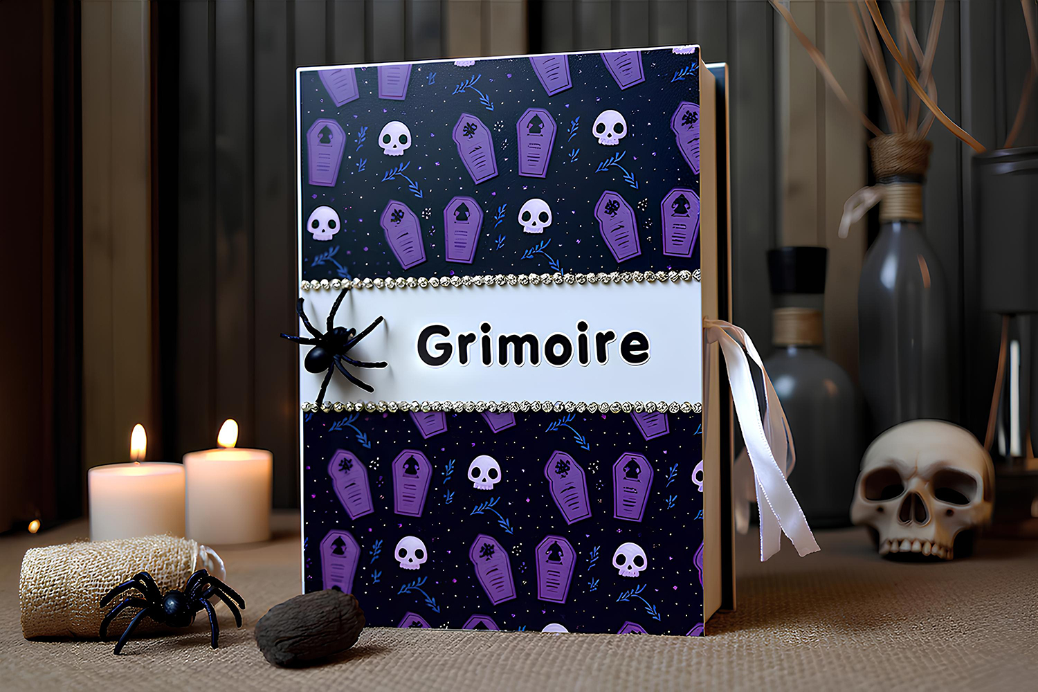 Ici nous avons écrit "Grimoire" mais les enfants pourront également personnaliser la face avant avec un prénom.