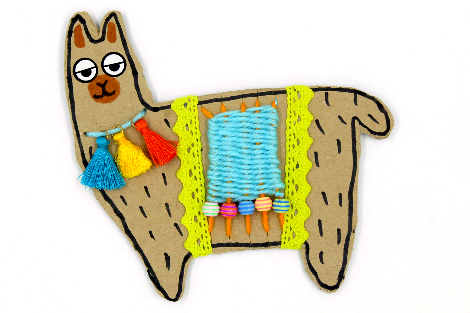 Une fois le tissage terminé, tracer les contours du lama avec un feutre noir.