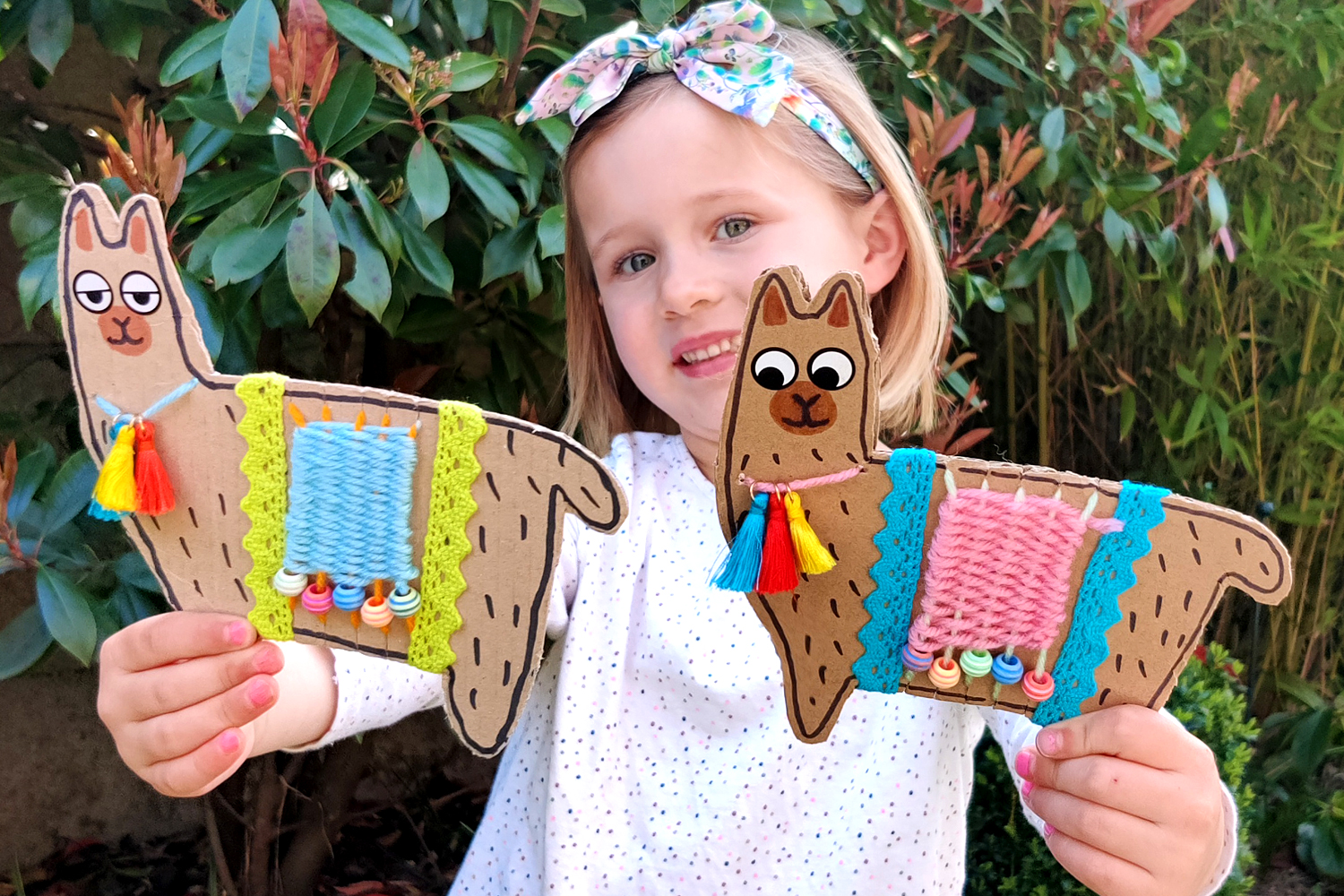 Avec un morceau de carton, de la laine, quelques perles, des pompons et des feutres les enfants pourront s'amuser à fabriquer des jolis lamas colorés.