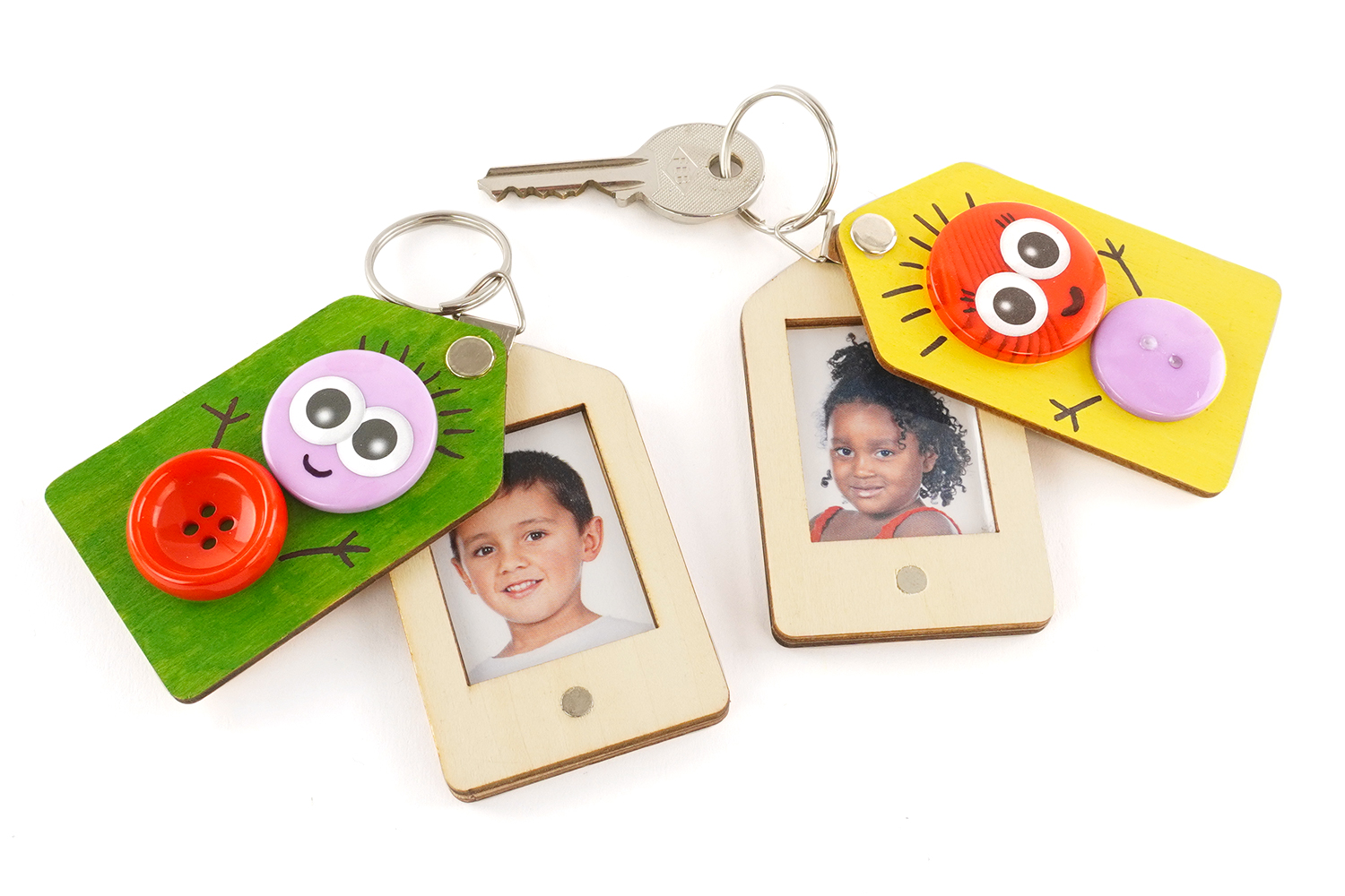 Avec quelques feutres, des boutons colorés et des yeux rigolos, les enfants vont transformer un simple objet en un personnage plein de vie. Ce porte-clés cache un secret : en l'ouvrant, les parents découvriront une jolie photo souvenir de leur petit artiste. Un cadeau attendrissant et unique pour la fête des mères ou la fête des pères !