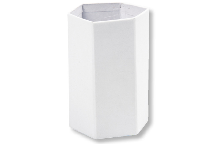 Pot en carton blanc rigide, décoré avec des stickers géométriques adhésifs en caoutchouc souple…