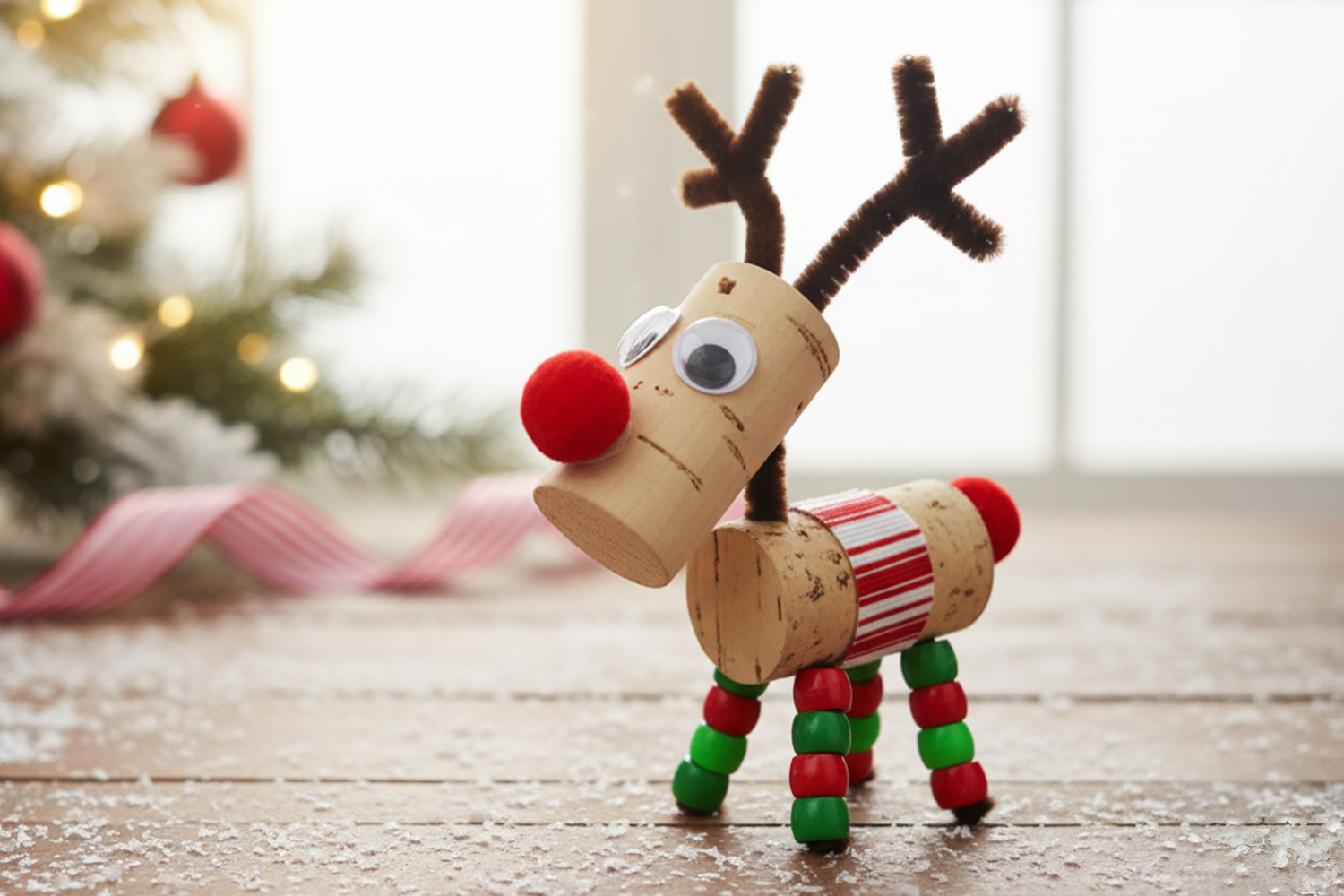 Découvrez un bricolage de Noël facile qui permettra aux enfants de fabriquer des jolis rennes avec des bouchons de liège.