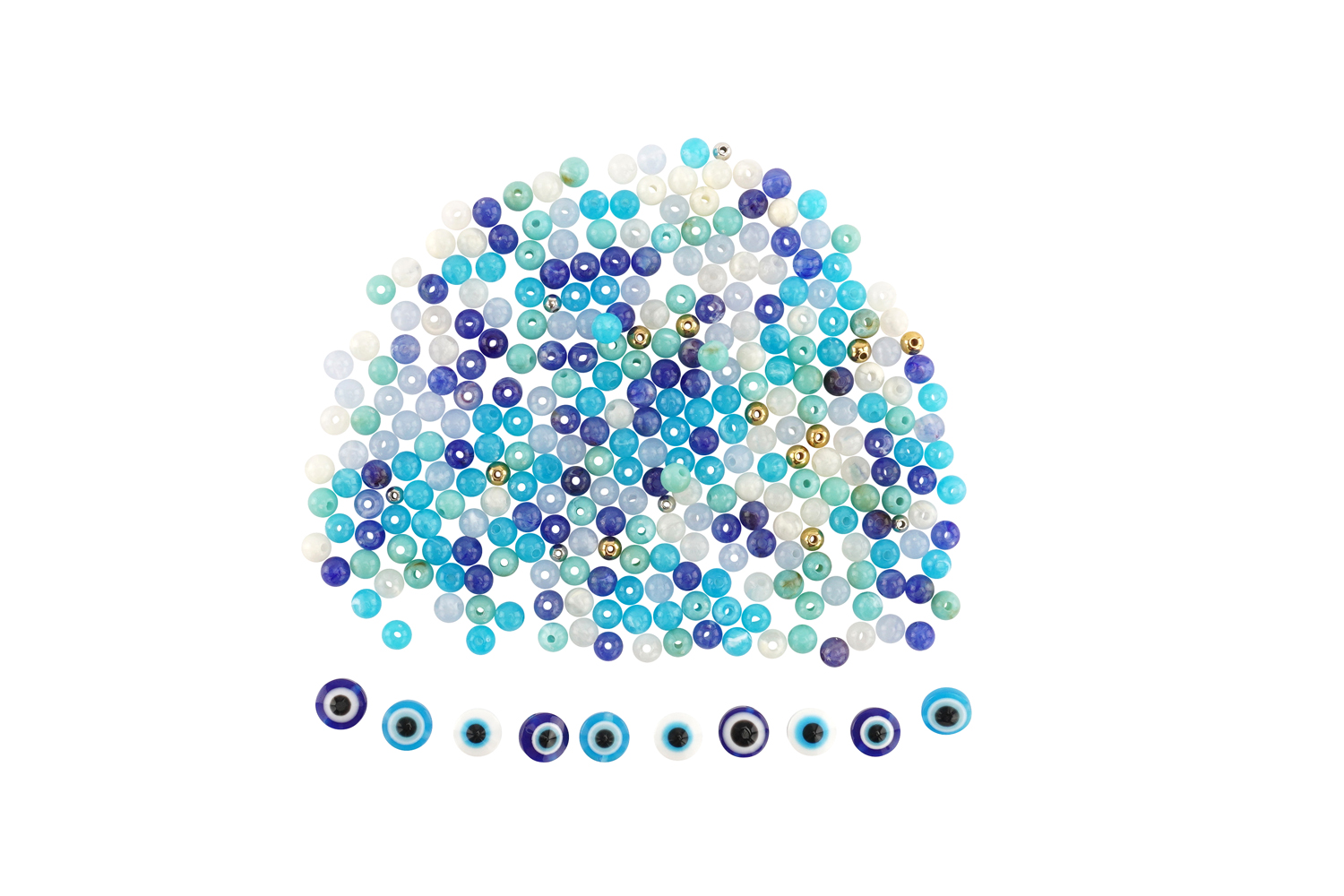 10 perles œil : Les perles centrales en acrylique avec le motif de l'oeil protecteur.