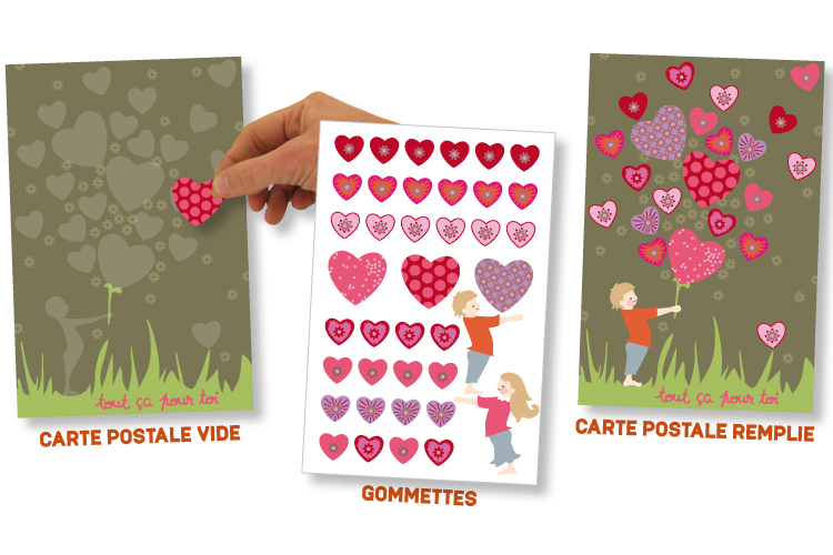 Kit carte postale gommettes "Enfant cœur"