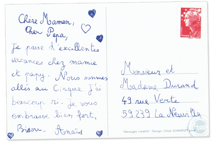Verso : pré-imprimé au format de la Poste