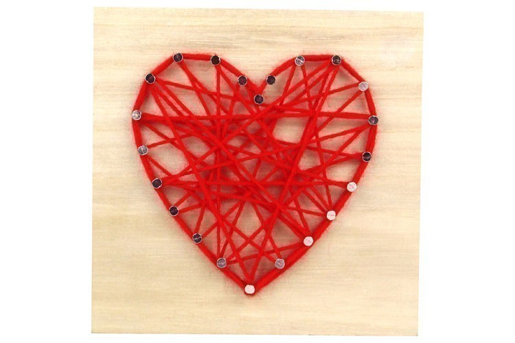 - Cadre en bois naturel (14 x 14 cm - épaisseur 1,5 cm) avec 22 clous plantés en forme de coeur.