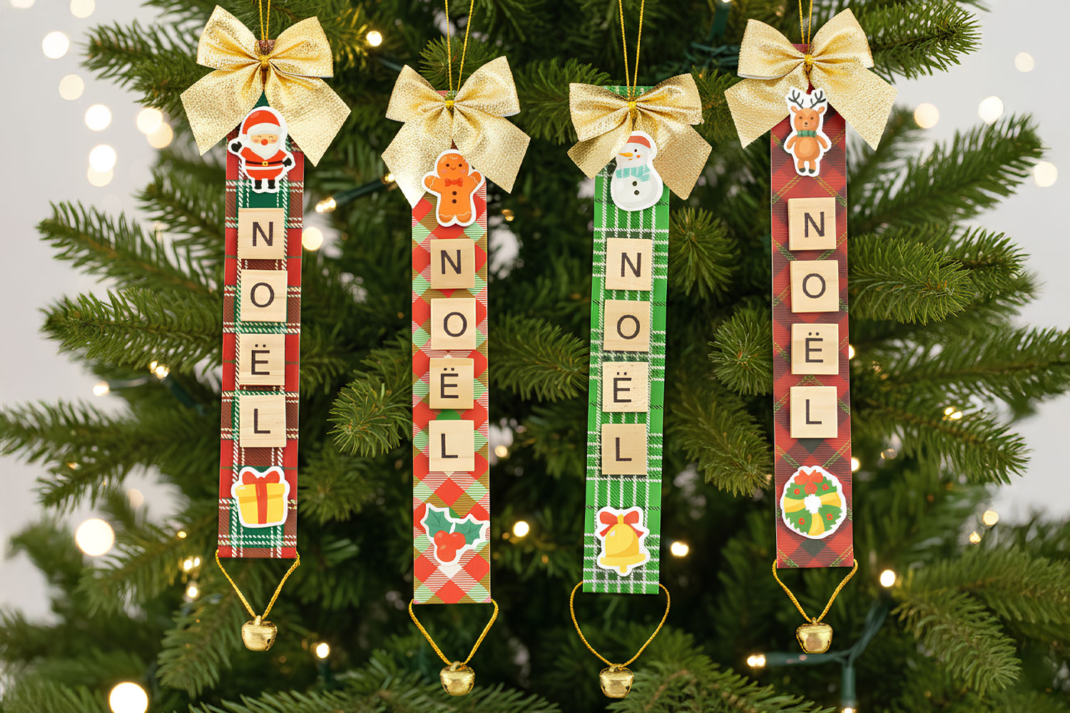 Kit suspensions de Noël avec lettres en bois - 4 pcs