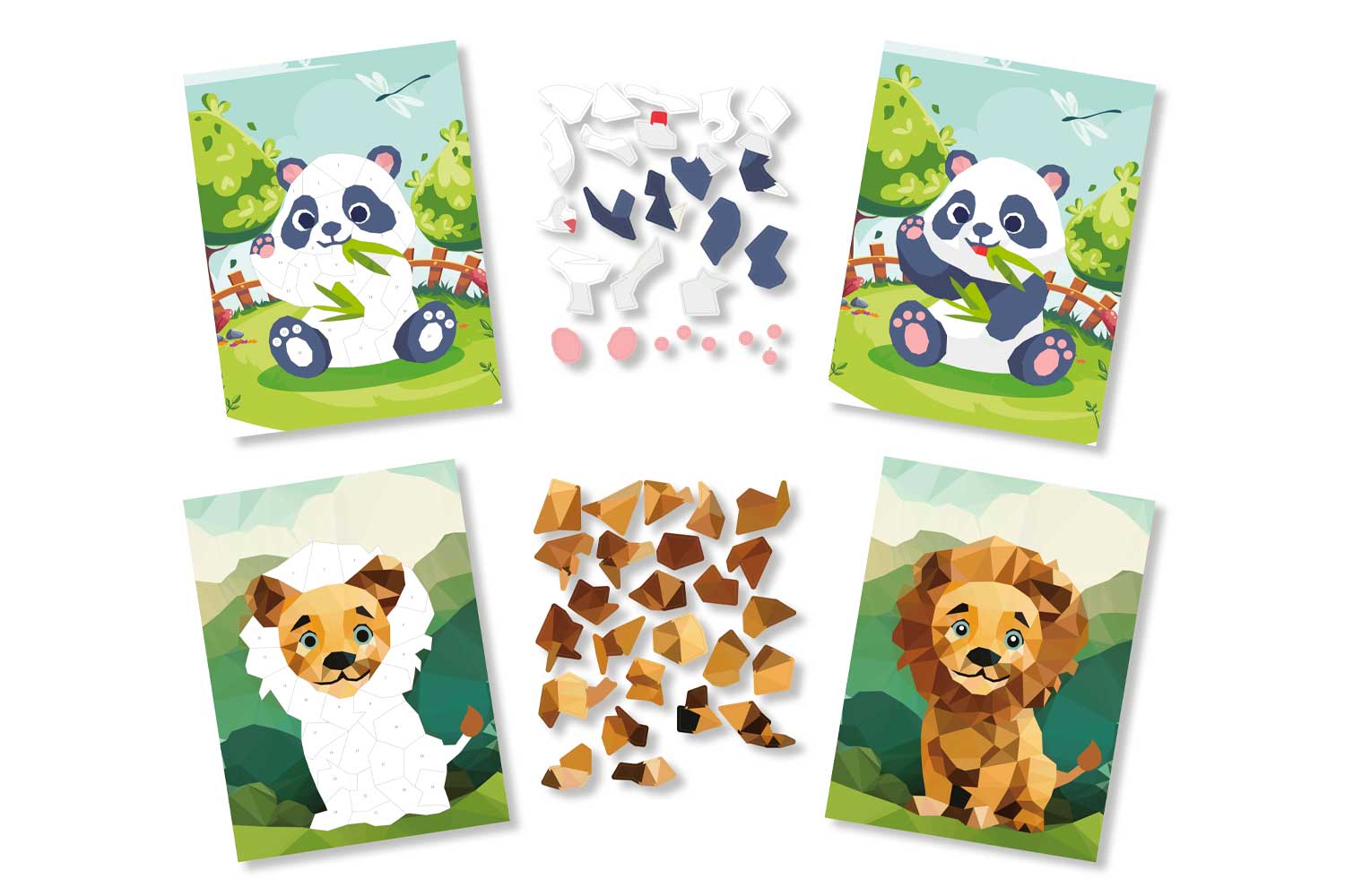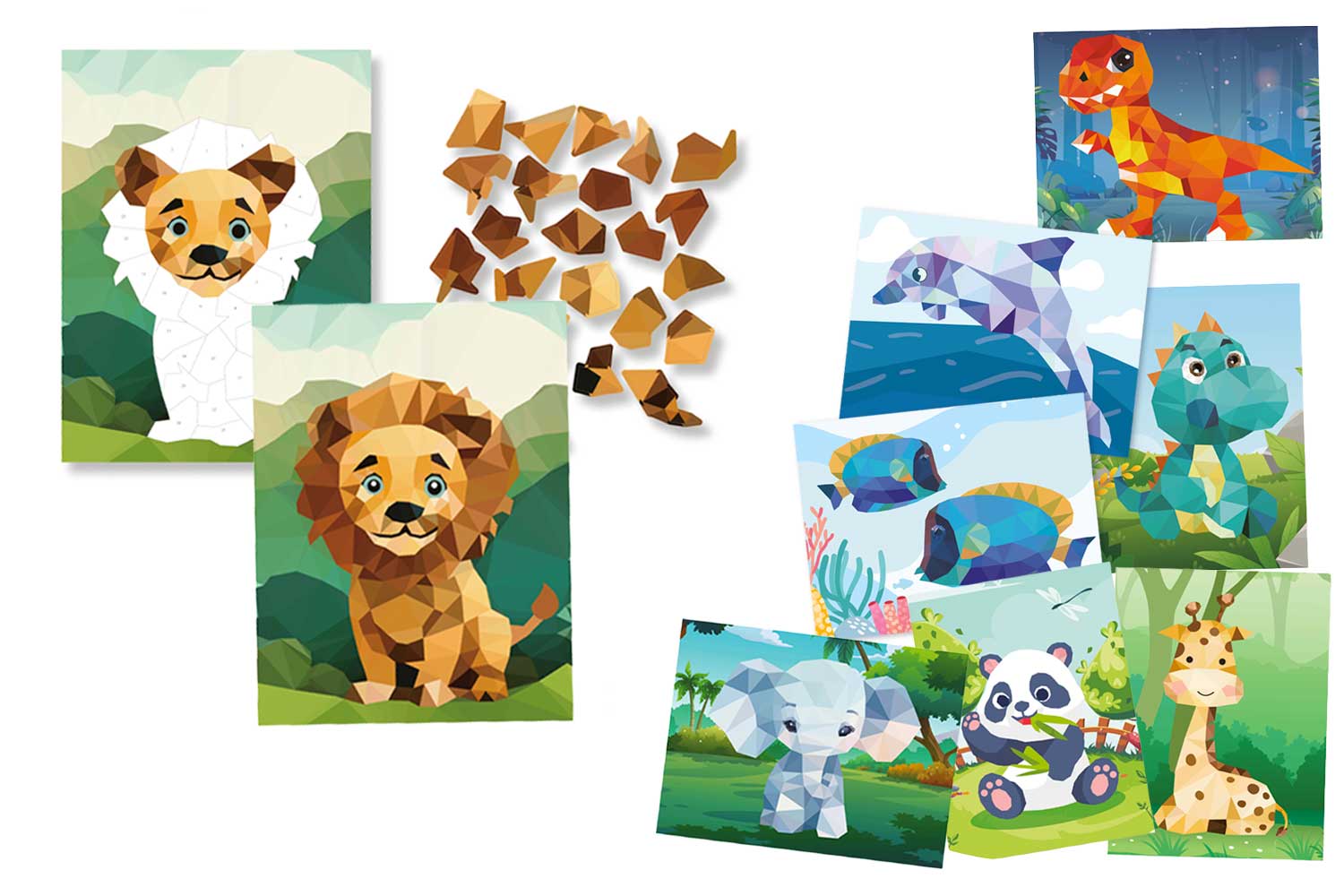 Initiez les enfants à l'art de la mosaïque moderne avec cette collection de tableaux gommettes au numéro. Cette activité créative est une fusion parfaite entre le jeu : la concentration et l'apprentissage. Les enfants adorent voir les formes géométriques s'assembler pour révéler progressivement des animaux colorés en effet 3D.