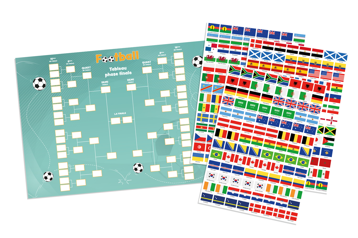 Le Tableau des Phases Finales : Devenez le maître des pronostics avec ce poster géant à compléter avec ses gommettes drapeaux.