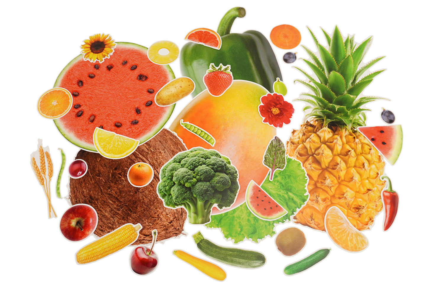 Mega set fruits et légumes réalistes en carte forte - 150 formes