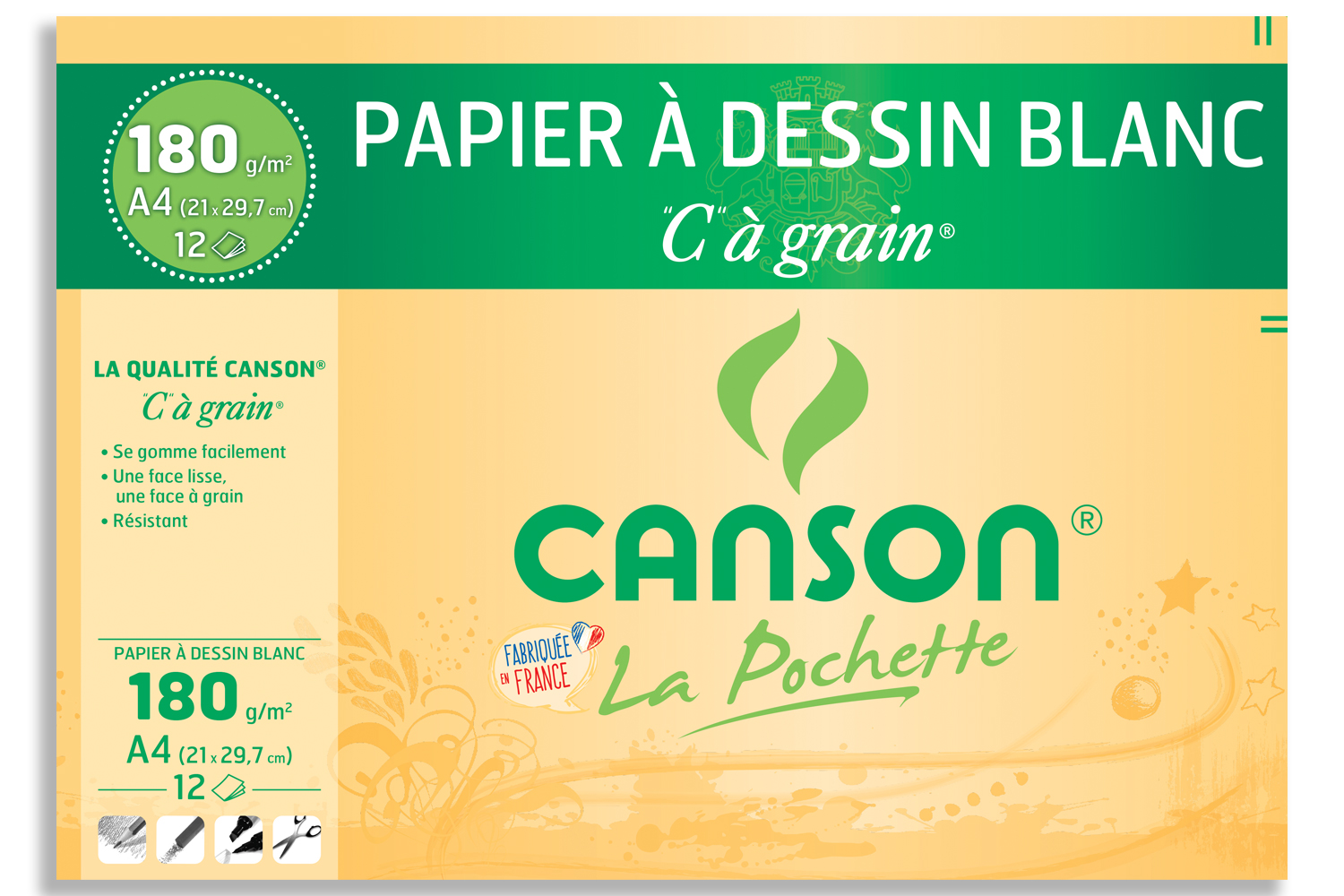 La pochette Canson est un grand classique de l'univers du dessin et du coloriage enfant. Papier de grande qualité, avec une face lisse et une face à grain pour apprendre à dessiner. Idéal pour le dessin au crayon de papier, crayons de couleur, aux feutres, et convient également pour travailler les encres.