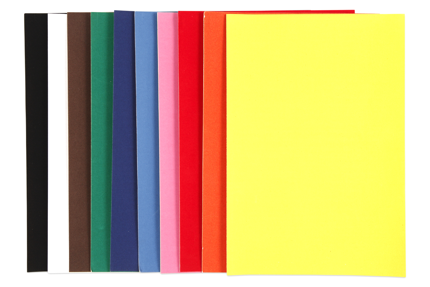 10 feuilles couleurs assorties : blanc, jaune, rouge, bleu clair, violet, bleu foncé, orange, vert, marron et noir