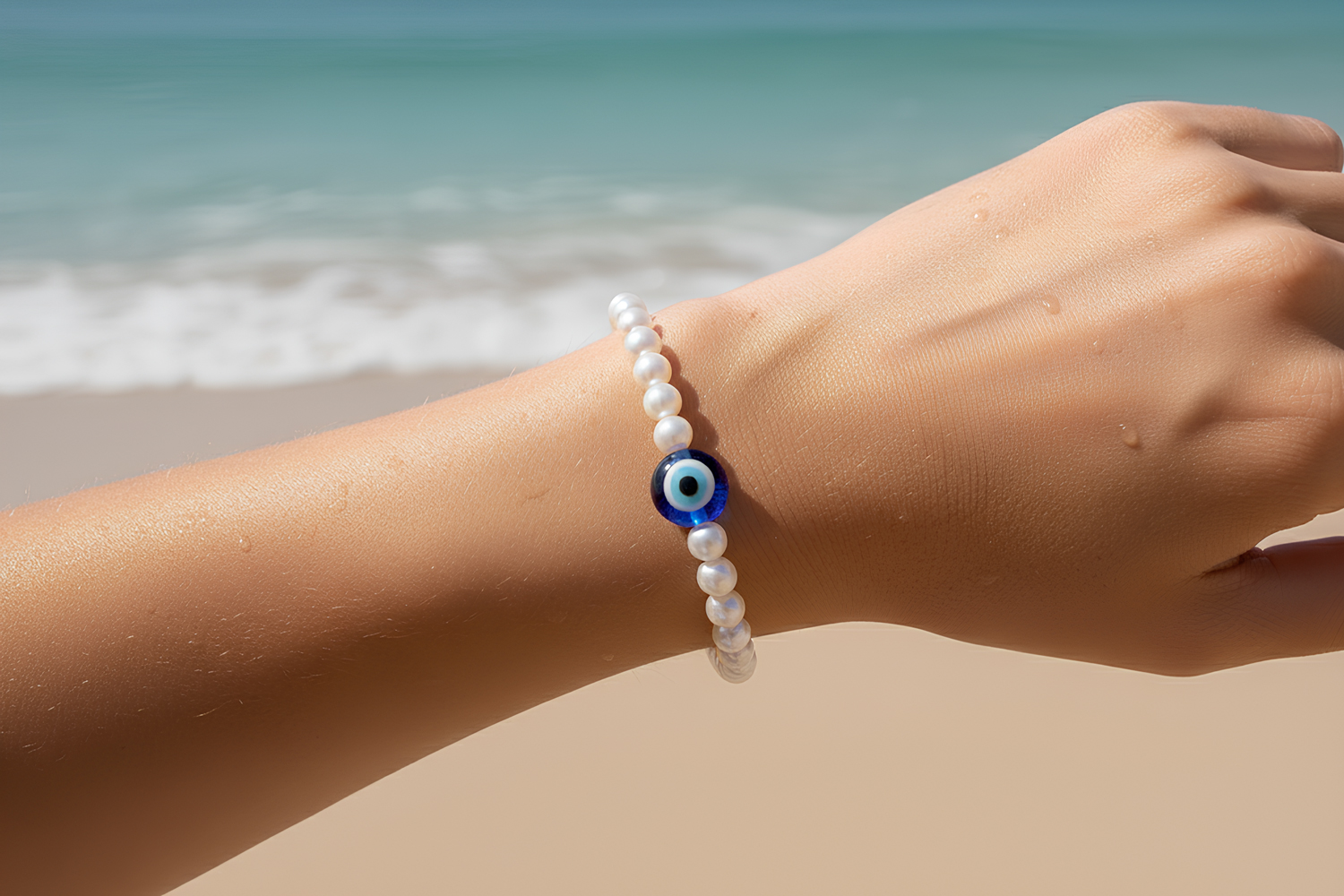 Bel assortiment de 12 perles oeil au camaieu de bleus. Ces perles sont l'élément indispensable pour confectionner des bracelets d'été ou des colliers grigris à offrir à ceux que vous aimez. Le sachet contient un mélange de 3 couleurs (blanc : bleu clair et bleu foncé) qui rappelle les nuances de la mer Méditerranée et s'accorde parfaitement avec des tenues estivales.